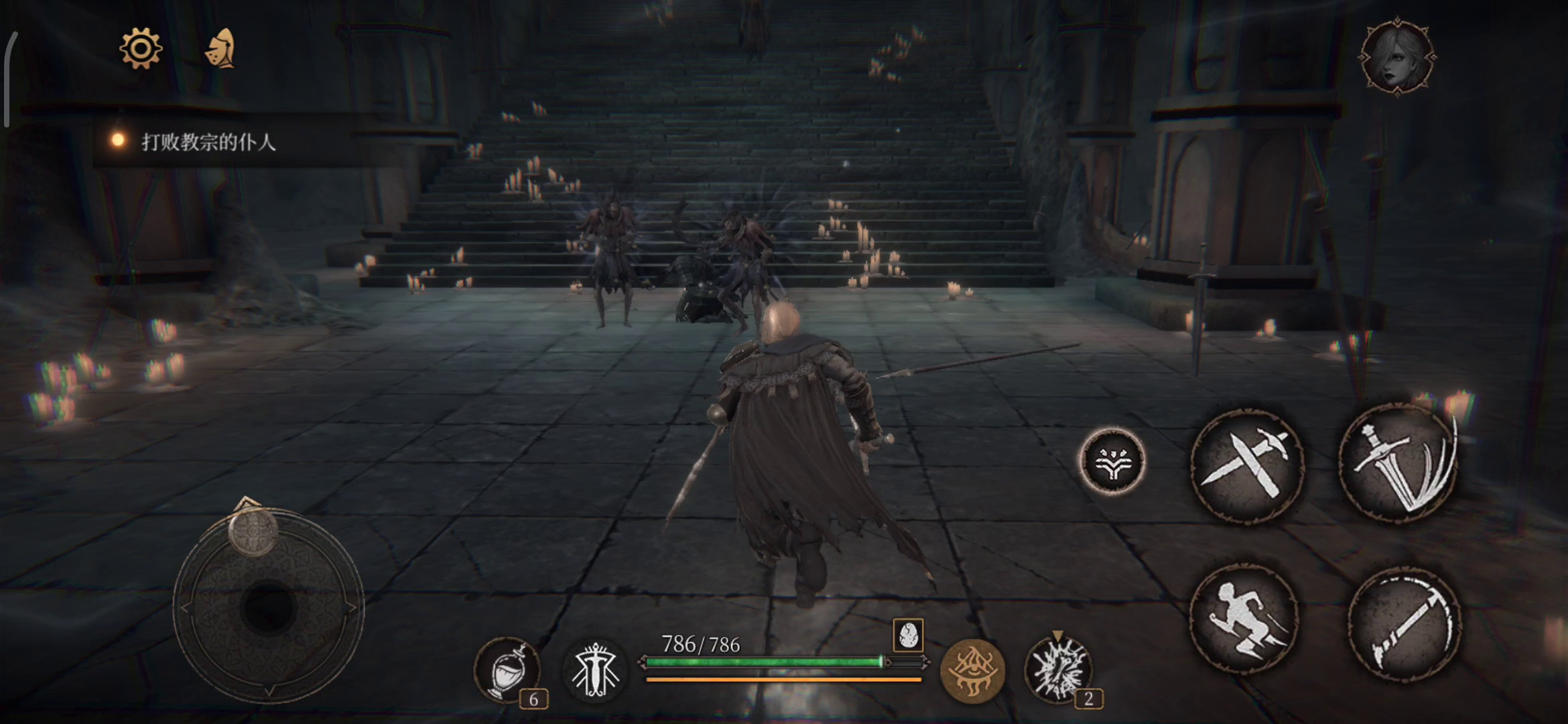 这个地方容易翻车,但是可以练弹反,还有反应速度什么的,没血了就可以到祭坛那儿直接刷新,满不错的,我这个一级的打起来都很容易。