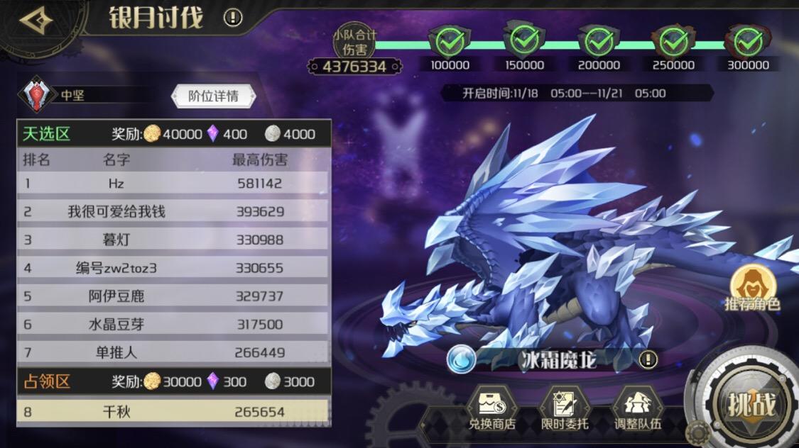 现在14w战 因为大区开的晚 在全区也能排40名 但是银月boss输出少的可怜 sl好几次才勉强26万