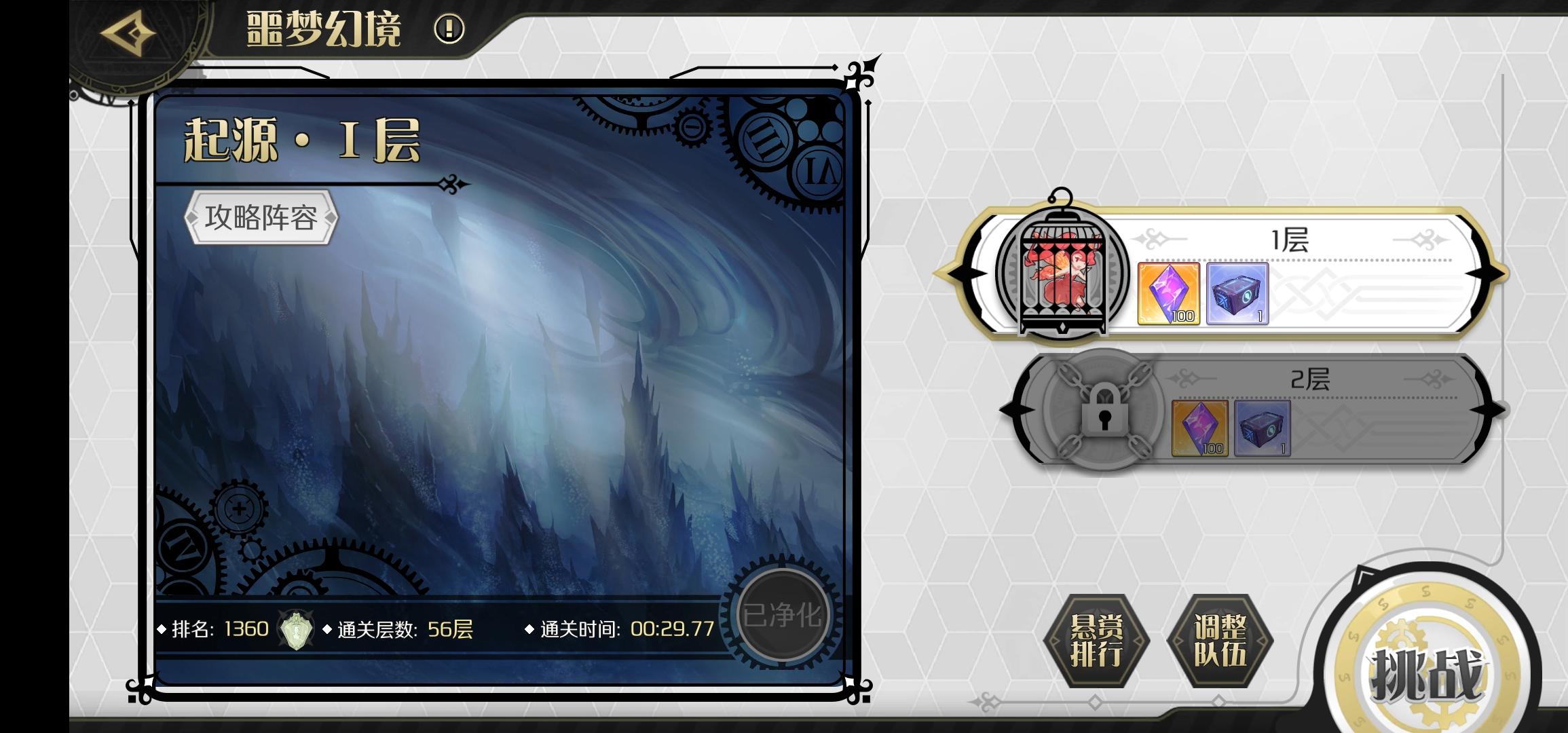 本来想挑战一下幻境,打开一看变成第一关了,而且还打不了
