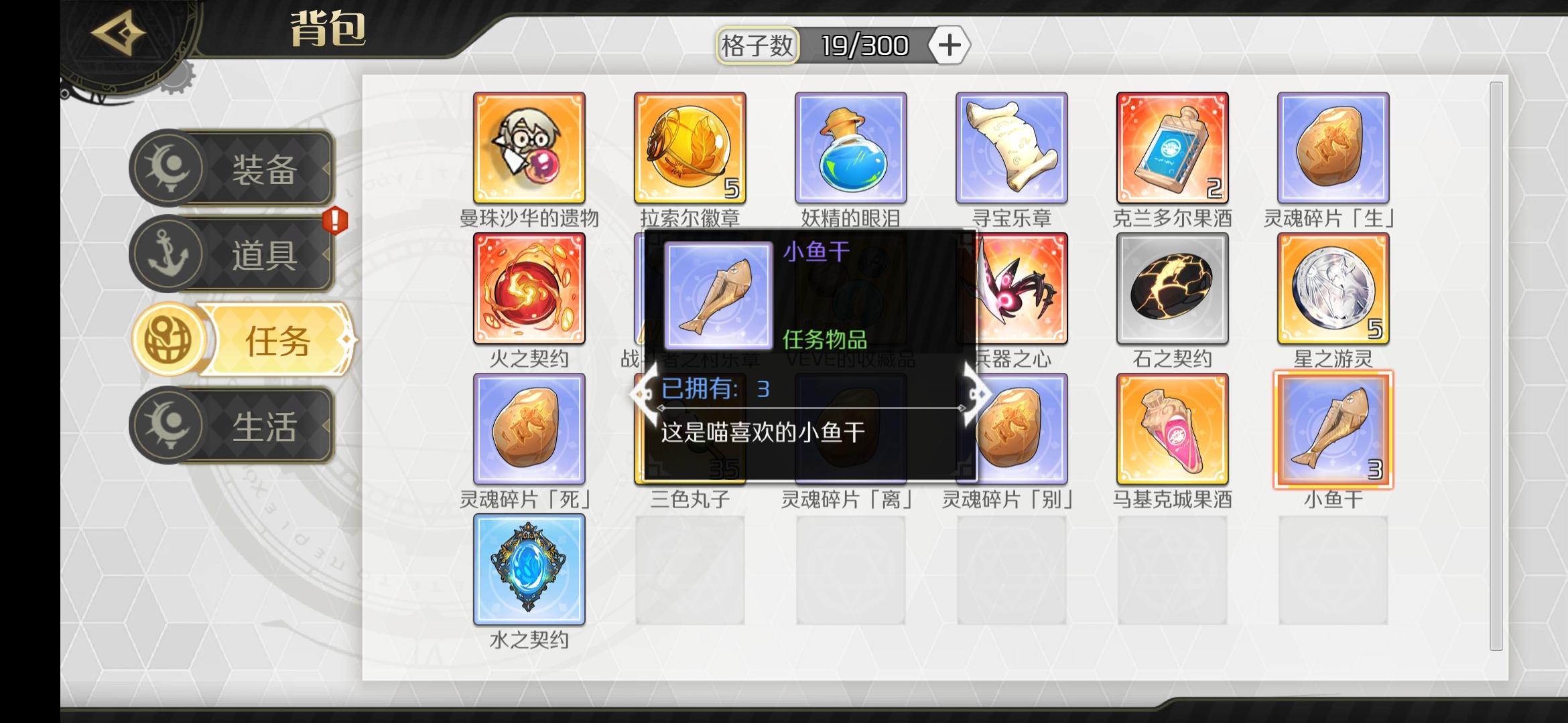 背包里有鱼干,可是任务栏里根本就没这个任务呀听别人说霞之洞窟还有剧情,怎么触发的,羁绊都刷满了,后面的任务没有提示的吗