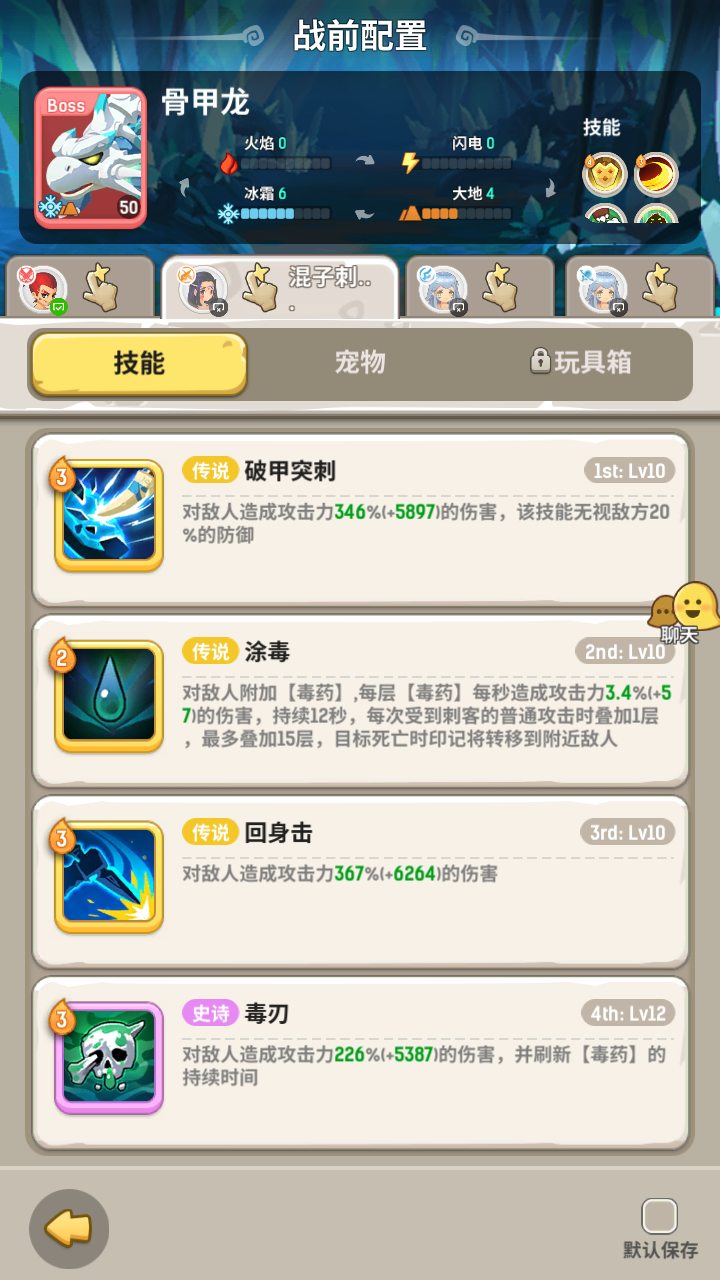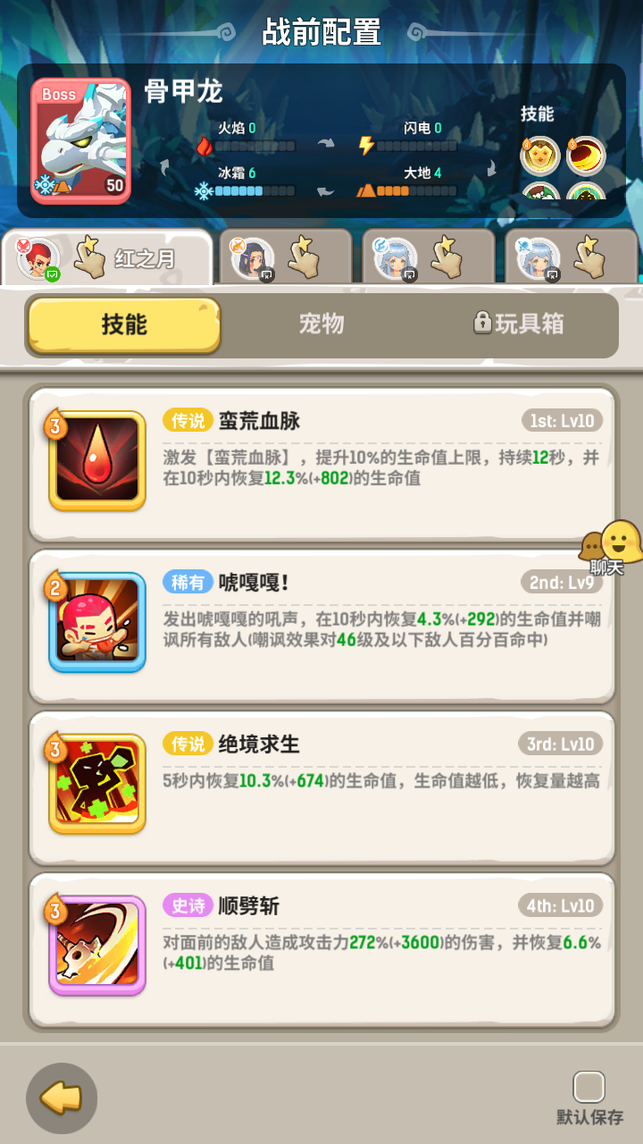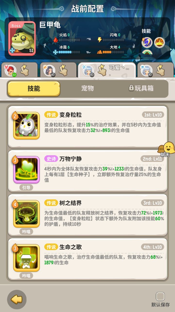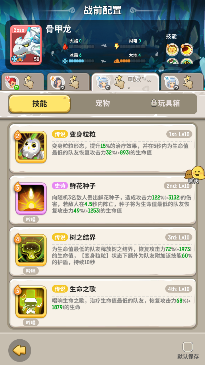 牦牛王斗:旋风斩 - 无畏之血 - 蛮荒血脉 - 血脉之力德:变身粒粒 - 树之结界 - 治愈 - 守护之歌刺:驱散之刃 - 涂毒 - 破甲突刺 - 毒刃猎:呼唤猎鹰.辛 - 呼唤猎鹰.伽 - 驱散之箭 - 贯通一箭白牦牛王斗:旋风斩 - 无畏之血 - 蛮荒血脉 - 上勾拳德:变身粒粒 - 生命种子 - 万物宁静 - 守护之歌刺:驱散之刃 - 涂毒 - 草丛斗篷 - 毒刃猎:驱散