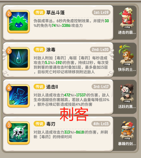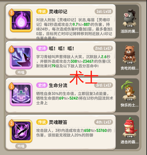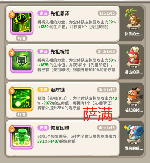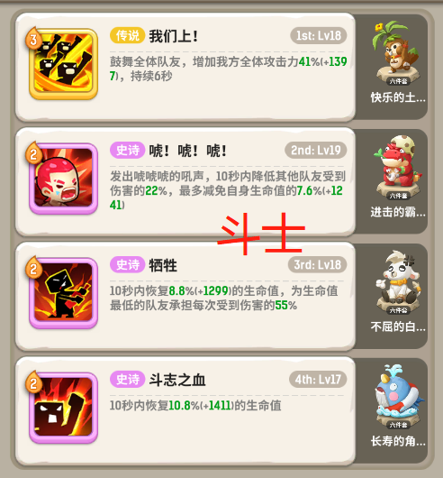 经过无数天的拼搏终于来到这里了先看看进这个图各位成员属性进入正题:爆钻伞蜥酋长1-9战 狮子吼(骨),重拳击飞(骆),作战动员(鲸),唬哈(鹿)术 生命分流(虎),灵魂印记(猪),脱水(雪土),灵魂鞭笞(熊)刺 草丛斗篷(猪),荼毒(土),回身击up(熊),毒刃(虎)萨 泉水图腾(猪),恢复图腾(羊),魅惑之舞(蟹),净化之泉(骨)金冠异特龙10-17战 唬嘎嘎(骆),作战动员(
