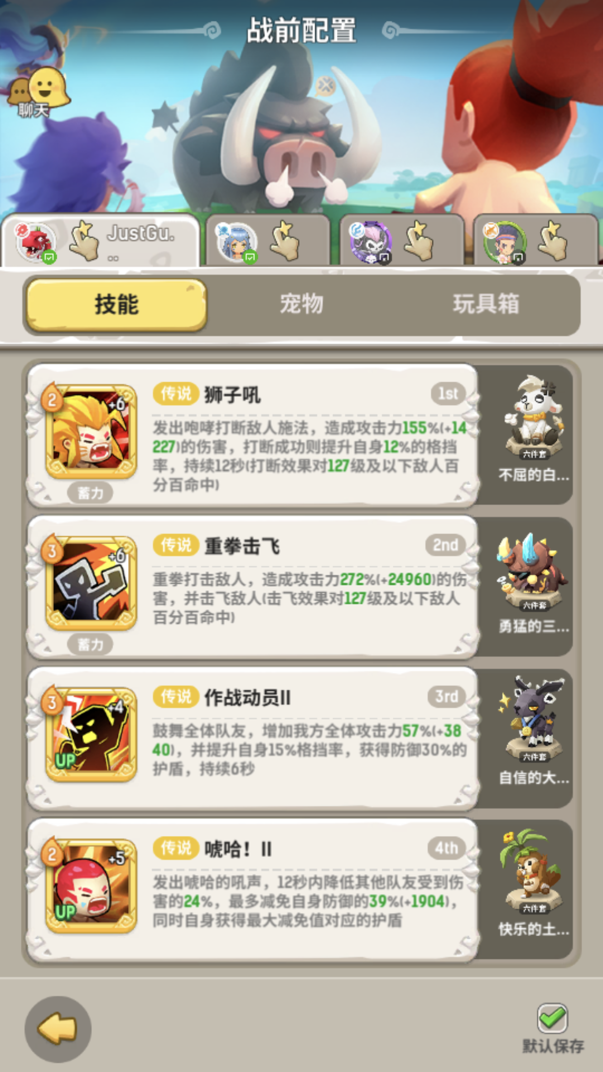 这春节和疫情使我推图进度减慢了好多,不好意思啊要大家等了,现在来分享一下我们队伍的战斗记录穿山甲酋长如果术士第一个技能转被秒可以考虑用土拨鼠撑血量宠物也要换防御的刀锋犀牛酋长萨满有英灵的话古龙1,土拨鼠2,且用防御宠物。没有英灵的话骨龙2,土拨鼠1用协力宠物