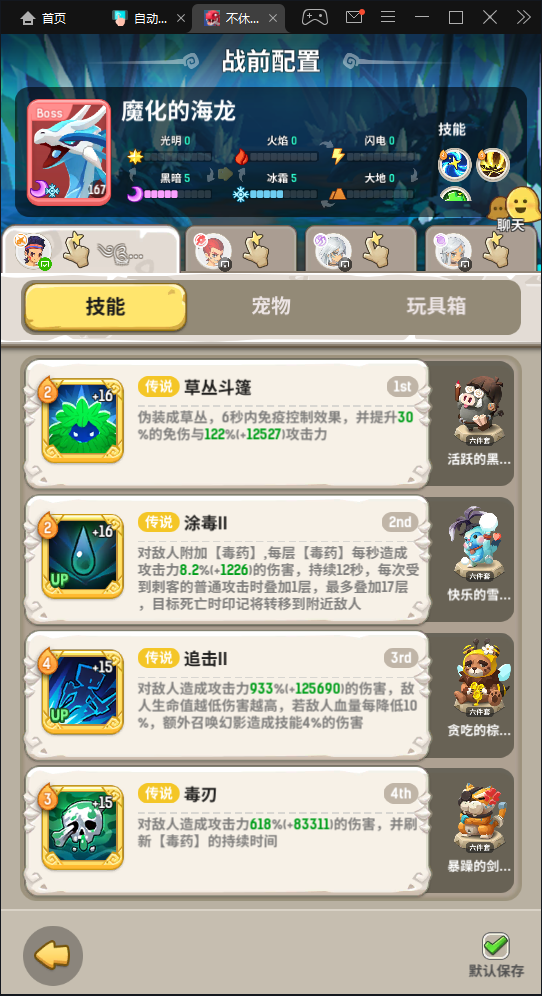 火甲龙(要被这个boss恶心死了)感觉不是很完美,有好的作业可以分享下法单体 刺草(猪) 涂 (雪鼠) 疾风飞刀 (熊) 毒(虎)刺客很容易断毒,三号带追击变身容易秒掉小怪导致变身后的涂毒打空,所以改成了疾风飞刀。赤角龙(能打78s)萨毒牌 传说+馈赠熔火剑龙熔岩兽酋长霸王龙没存再遇到了更新在下方