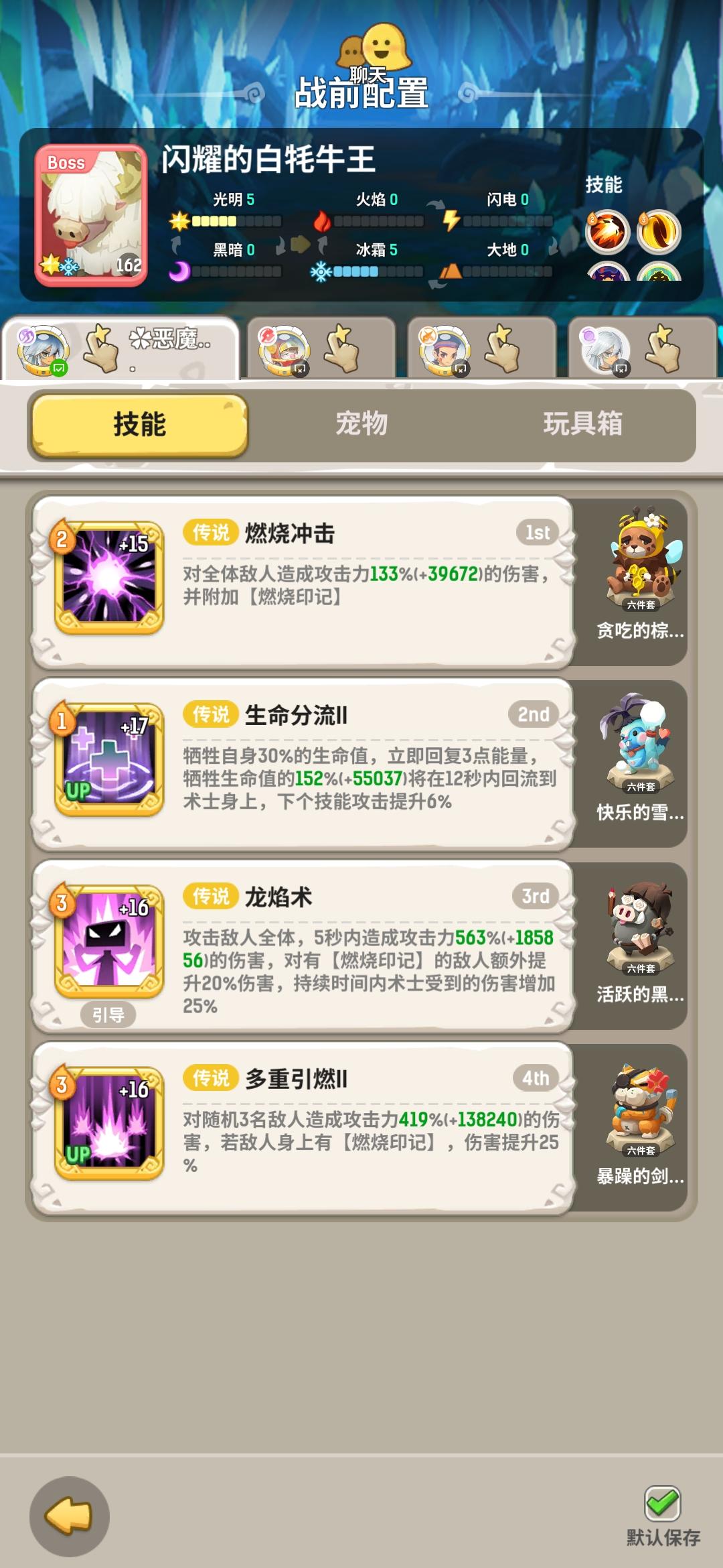 太不容易了,卡了好久了 天天都在研究又没找到什么作业只有自己琢磨,这套勉强能过真的 稍微改动一个技能和玩具都是被秒的份这套可能也要被秒的时候,还要看点运气,多打几次或者让队友吃点食物基本上就能过了真的必须要吐槽,本来我试着把战士的第一个狮子吼换个成加防御和盾的,直接第一波技能就被秒了,搞的要是每个人都带打断的技能带尼玛16个技能+剧毒+甲骨+嘟嘟鸟什么的 那不是无敌了。无语,防御还有什么用