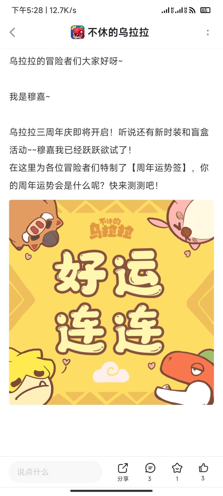 乌拉拉三周年快乐。 ID288838