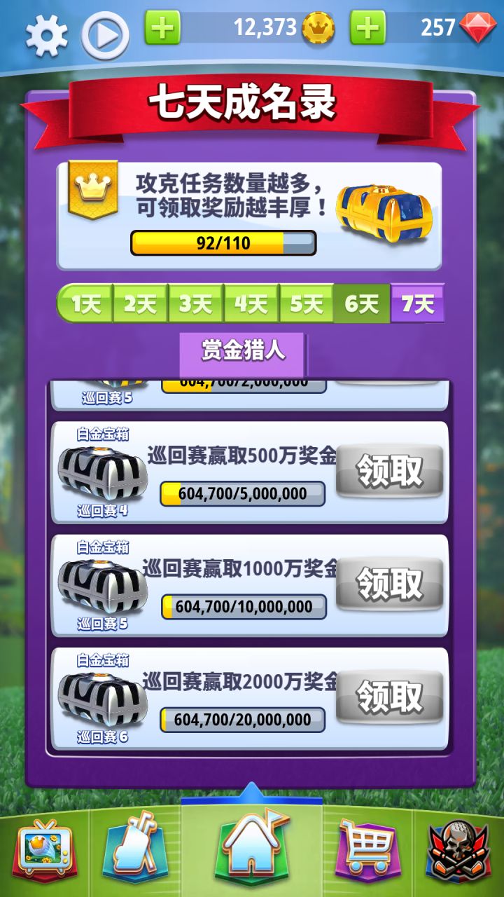 这游戏是认真的吗?这是让打巡几?巡7赢100场?巡9赢20场?还是去巡11赌上一场?7日赢2000千万,这是我见过最牛逼的新手任务!逼氪也不用这么明显吧?还隐藏上不让人看,不知道第七天还有什么大招!可怜我一个萌新,巡6回回淘汰赛,次次先手被教做人!跨过了沙坑,越过了草地,最终淘汰赛一杆掉进了水坑!本来人就少,还搞这种劝退任务,溜了溜了!