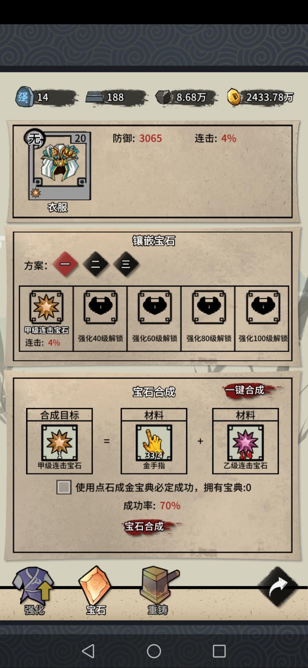 合成宝石,写的70%的概率,实际上一半都没有