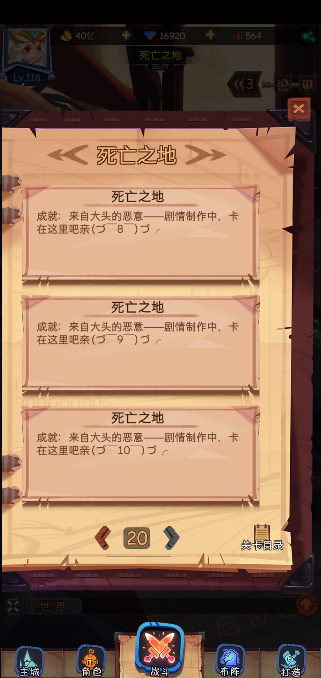 今天推到20-77遇到双希勒,大佬说了遇到双希勒就睡觉吧,前几天推图剧情都是跳过的,就打算看看前面的剧情,结果发现了这个。