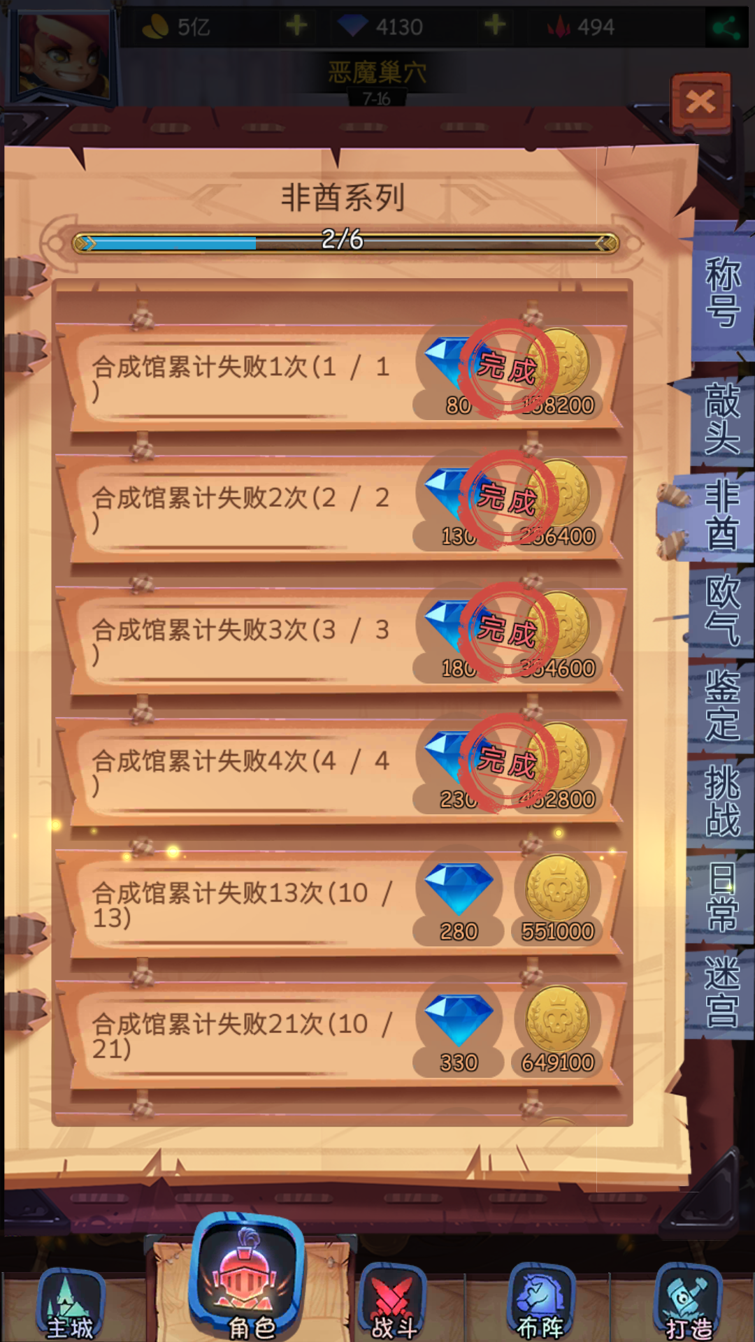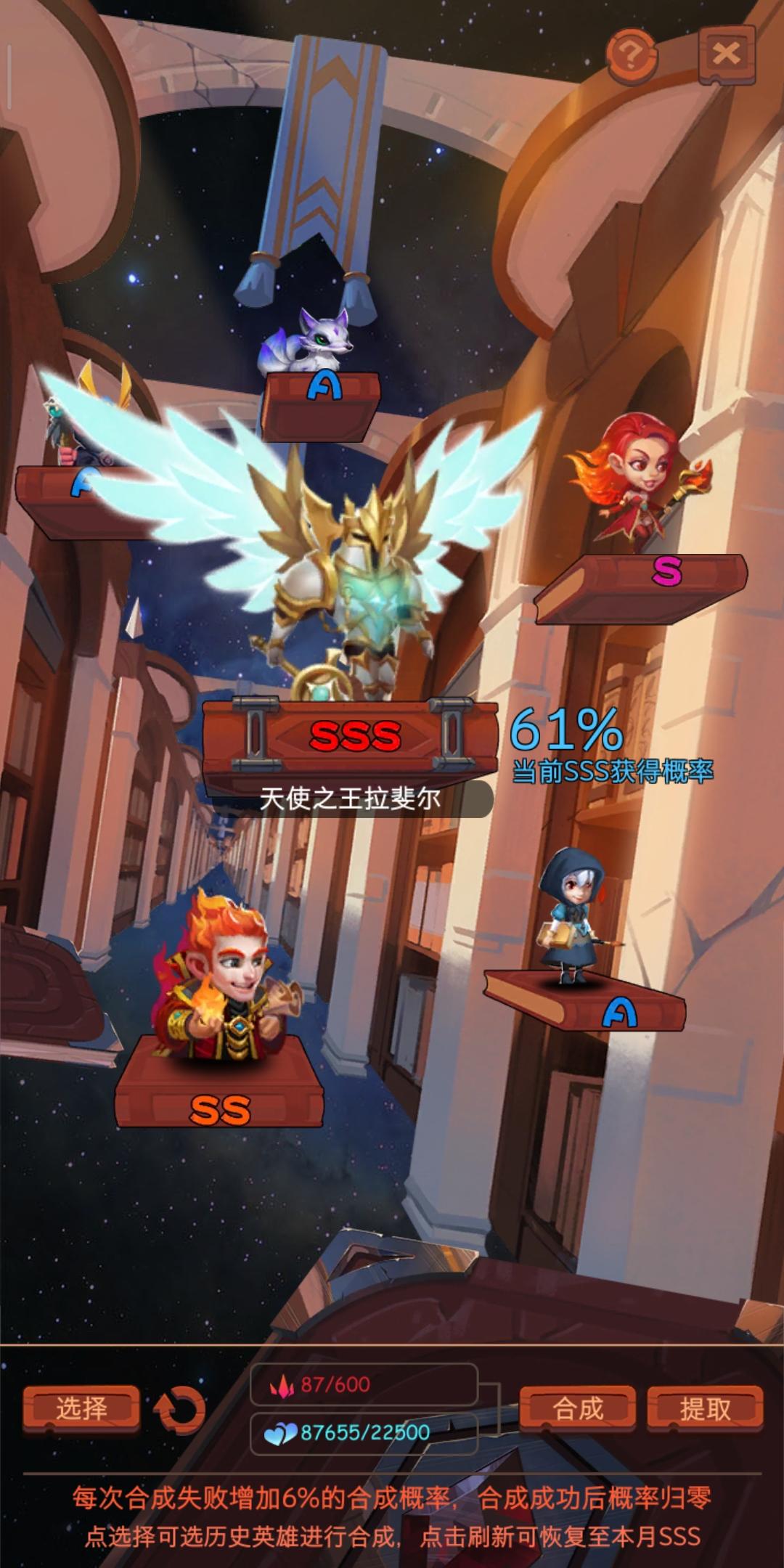 上图说话通过图可以看出,我合成共31次,失败28次。我:??!现有3个合成出来的sss,迷宫两个都是买的。除去第一个保底19出,也就是31-4=27次。最高61,也就是说我27次出了两个sss。除去合成馆躺着的61舔屎王,就有27-10=17次我17次出了两sss。我是怎么坚持玩下来的,我的第二个sss是在88级的时候才出的血喵,不知道还有没有人比我更加不幸运了。