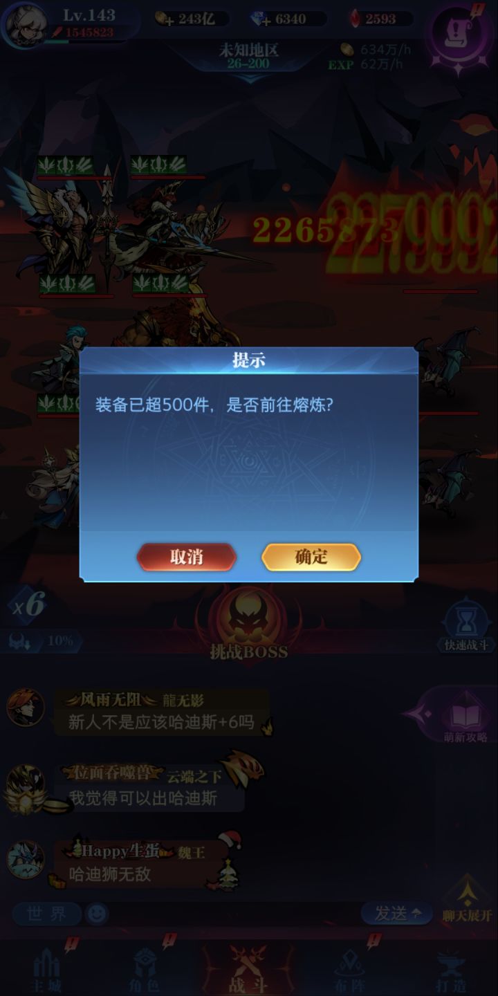 装备超过500件会强制熔炼,换装备的时候一直弹出来很烦,装备鉴定出来了一时间也没想好先融掉哪些。