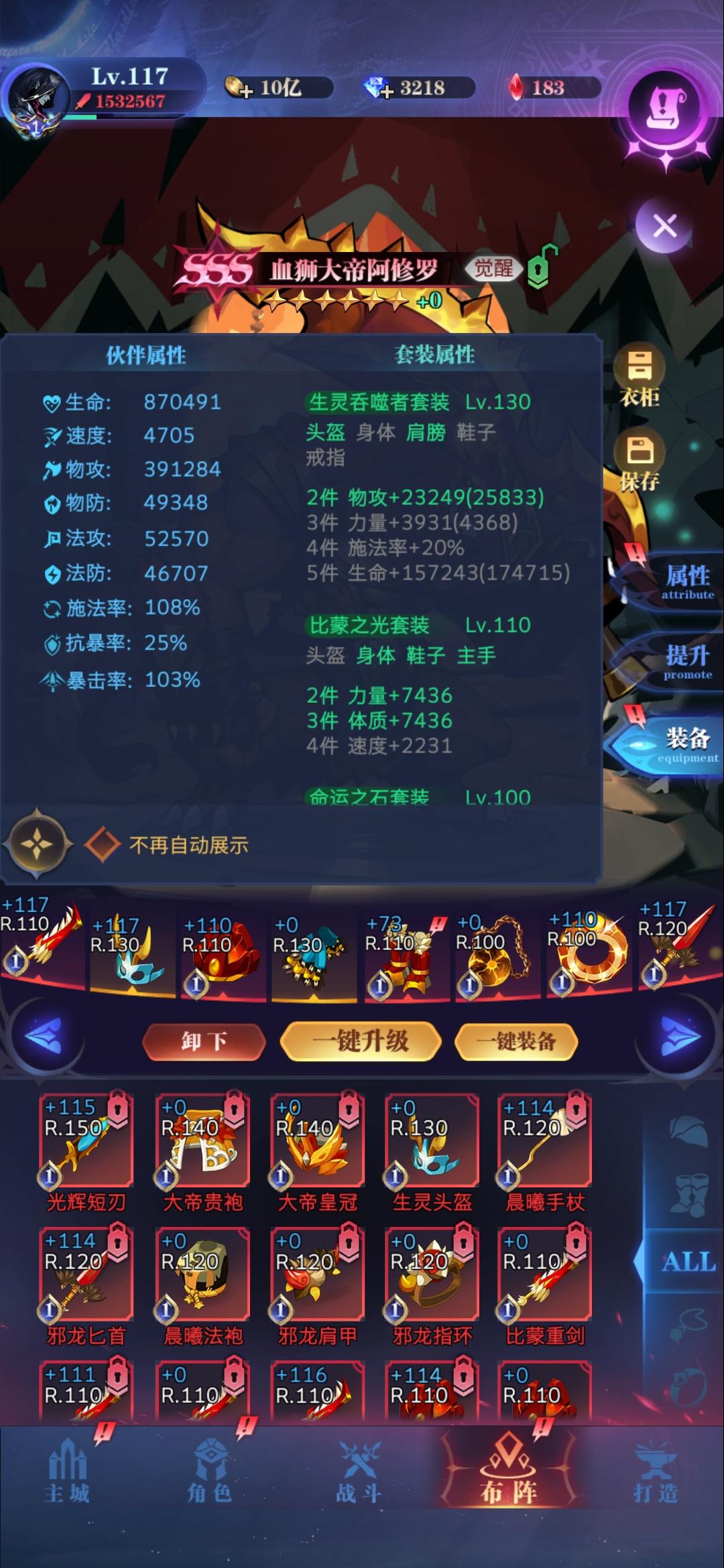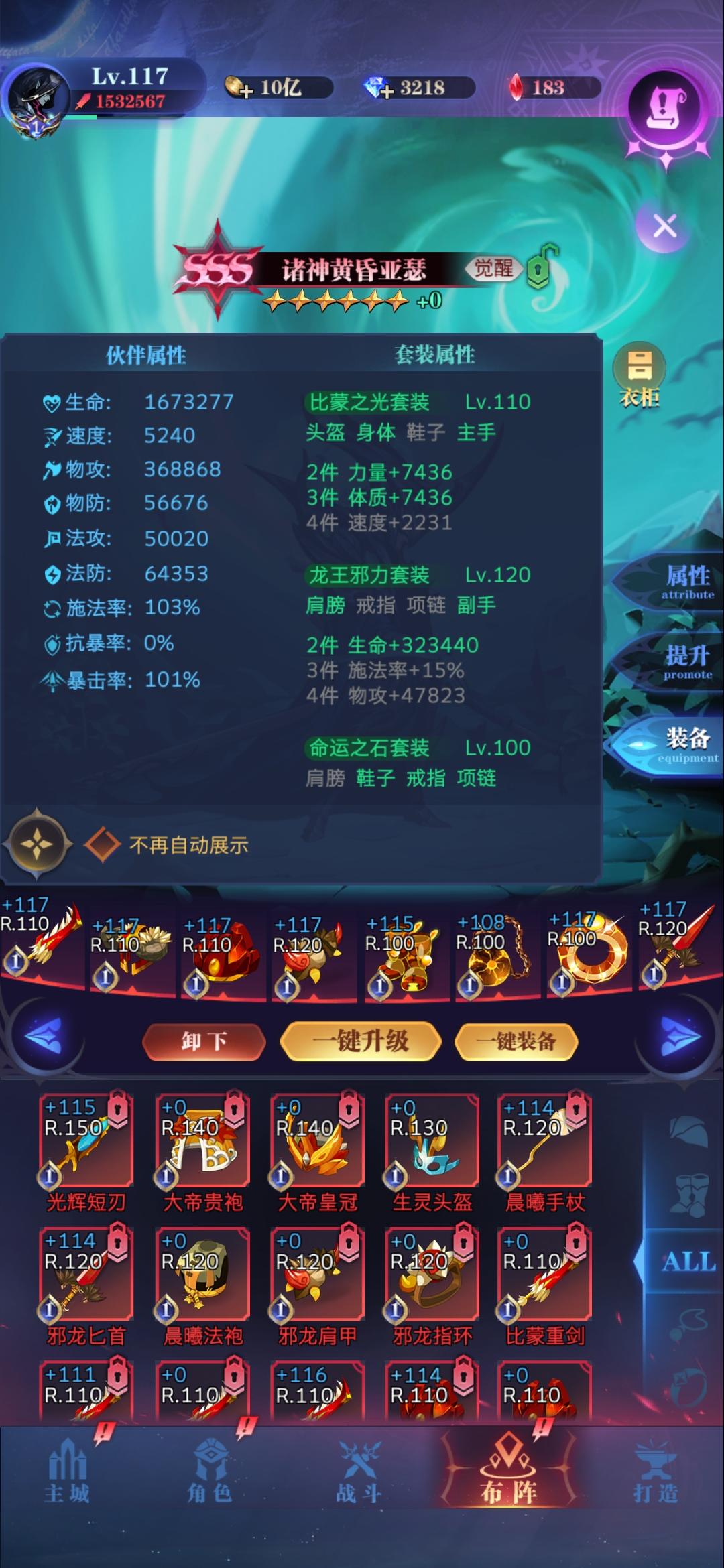 二转23-187,男主天神➕晕,狮子两回合与猪同归,剩下的单花簇就不断给沉默,依靠风语处理掉花簇(刷个脸就好了,有女皇在场活着效果更佳)😅打血战被沉默致死的同学们应该都心有体会~~~我的装备是一转150和160的装备,还没换二转的装备,如果你有二转的装备效果推测会更佳