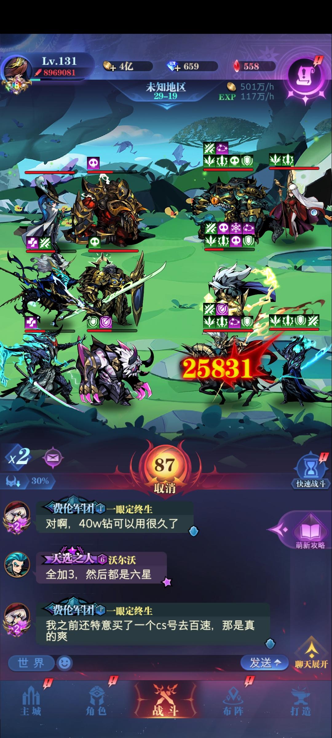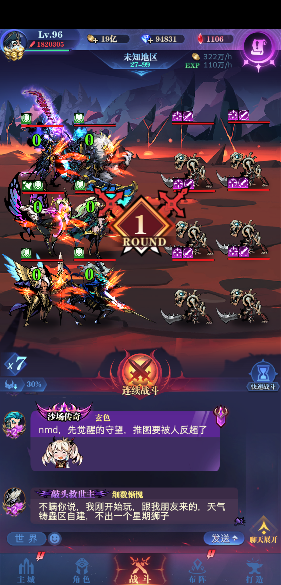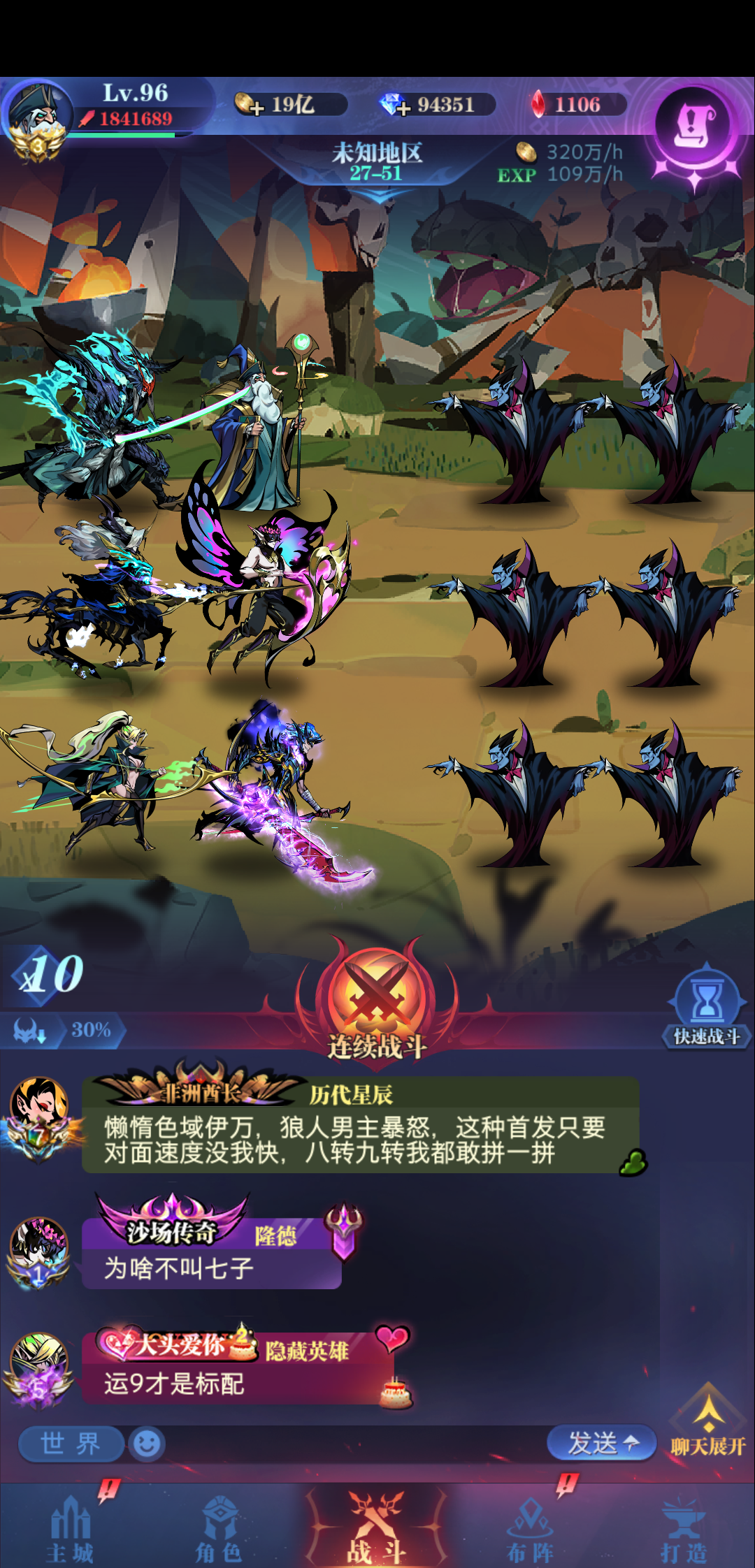右上角的星辰本来是狮子,龙王,这些的,但是不顶用,对面元素直接秒我的输出。于是换成了星辰(我法术和肉英雄都装的星辰套),几下就过了,这多快啊。