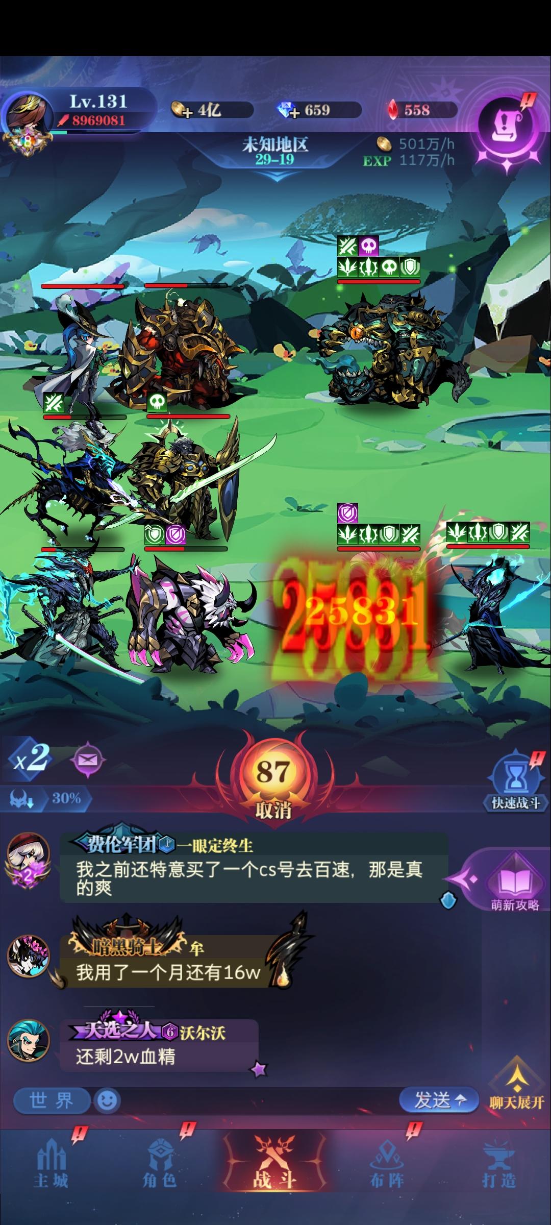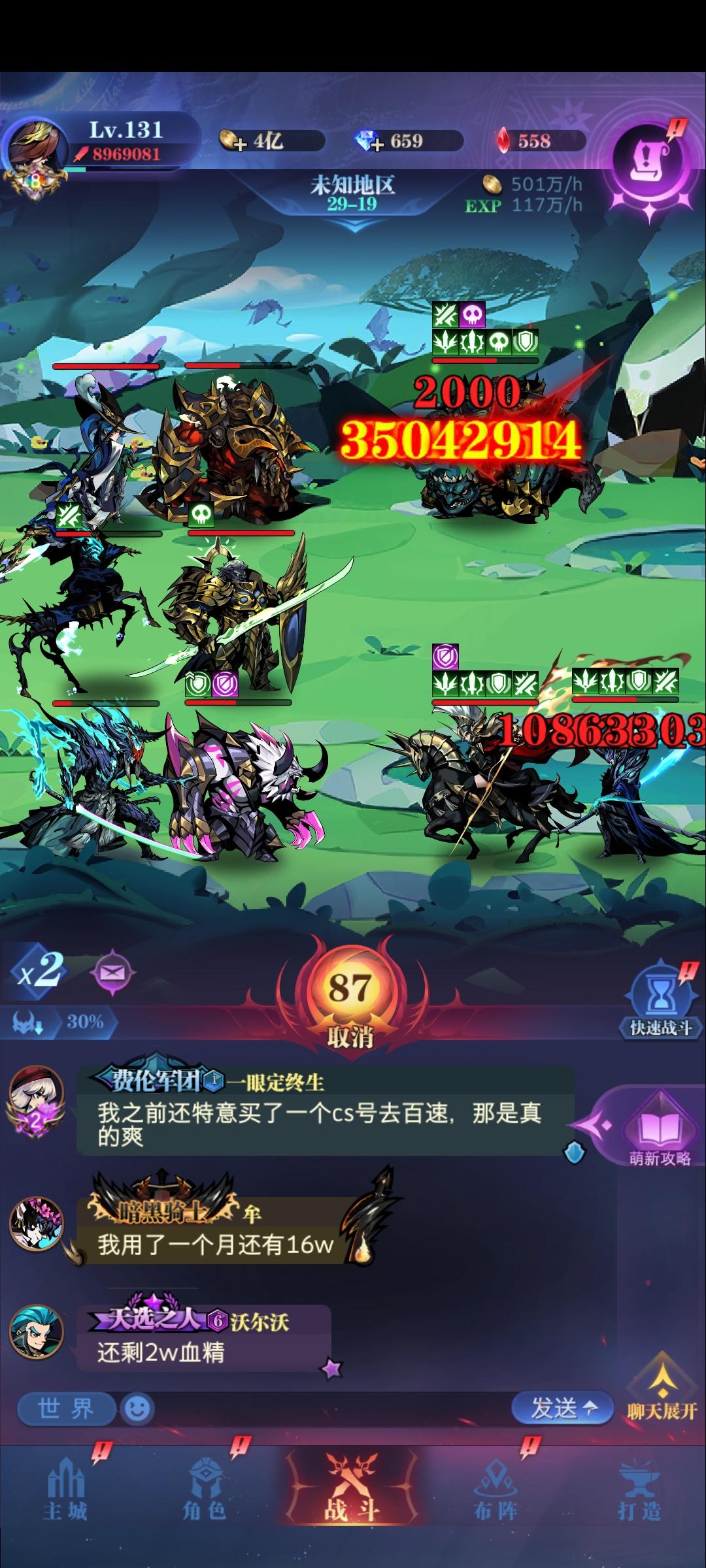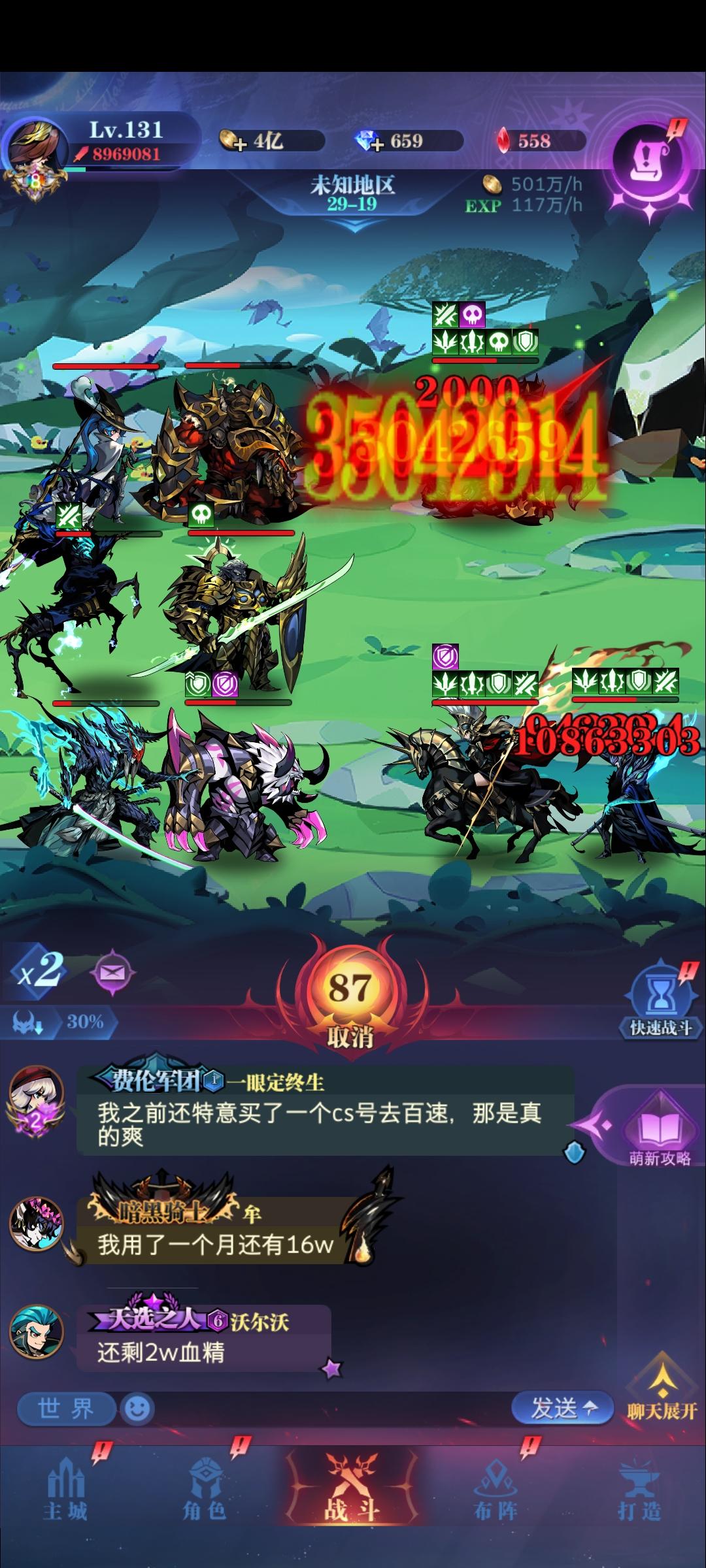 右上角的星辰本来是狮子,龙王,这些的,但是不顶用,对面元素直接秒我的输出。于是换成了星辰(我法术和肉英雄都装的星辰套),几下就过了,这多快啊。