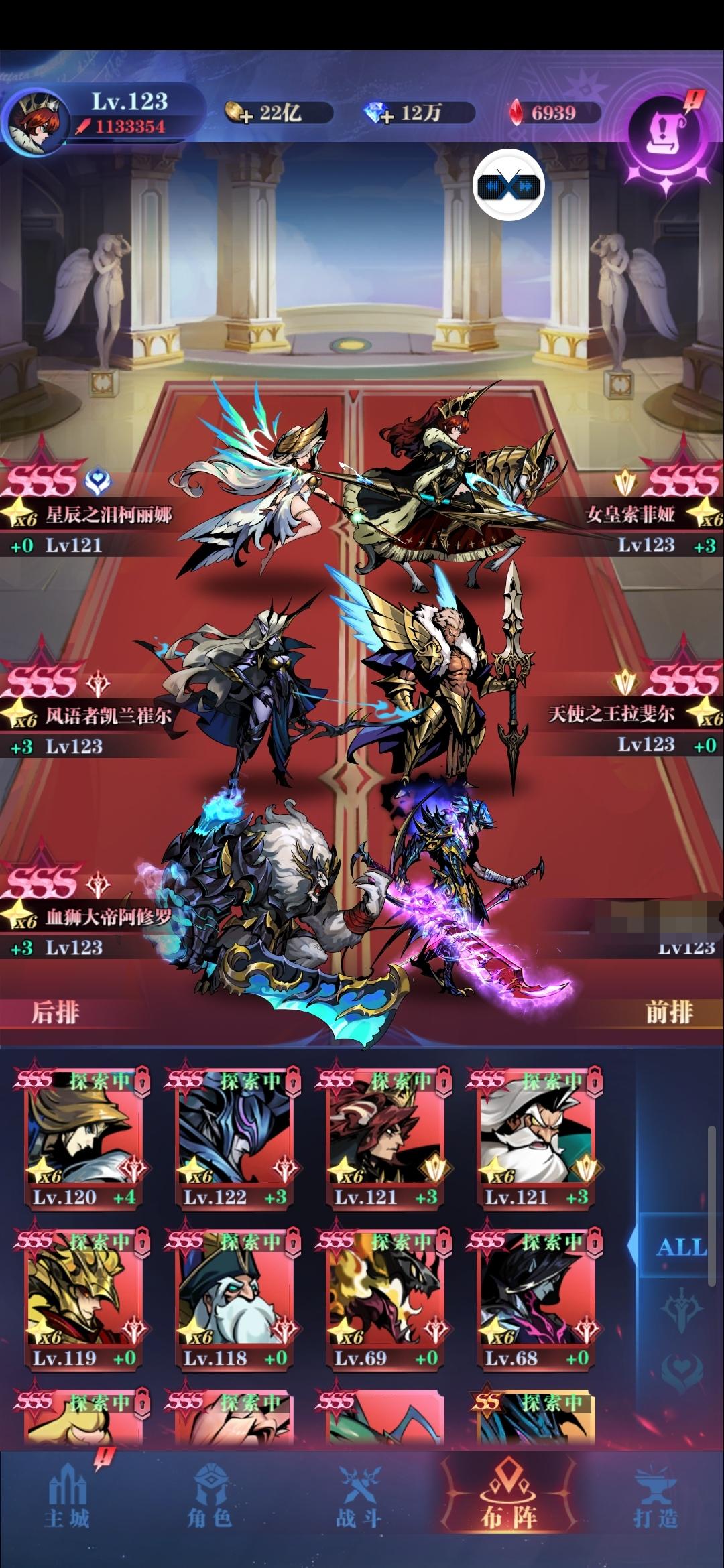 前排 圣光 天使 女皇后排 正义 男主 狮子要求:正义女皇攻击倒2,正义神器四血,穿法系装备,其他的就比蒙命运邪龙匕首,调好攻击秒过的