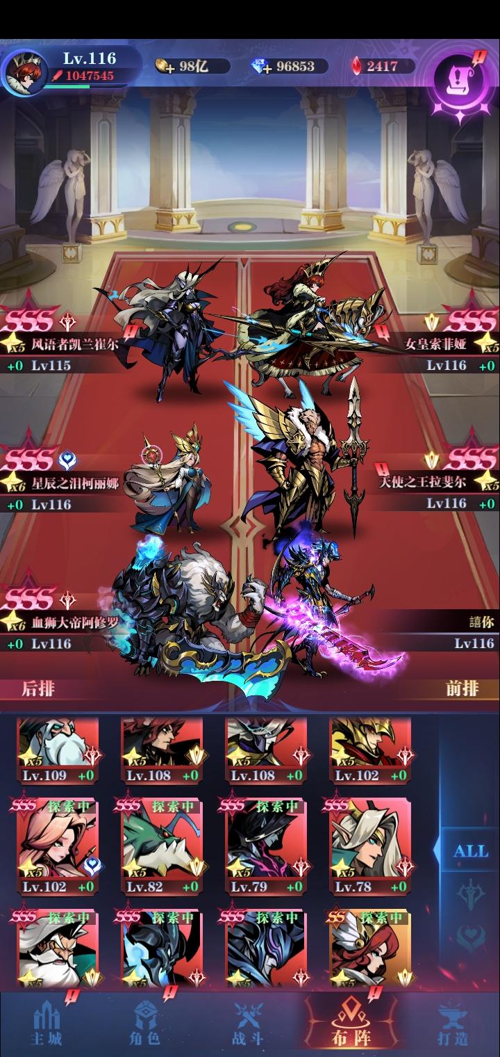 为期两个半月,七转挂机毕业。总结1:和前6转相比,需要花更多时间和精力。(因为每图基本都要调整站位)总结2:牛头、亚瑟必须觉醒。(没有牛头寸步难行)总结3:肝帝和佛系玩家会进一步拉开等级差距。(和6转一样,43图经验和40经验差近一半)总结4:图里各种星辰、守望(狗男女)。(前排星辰上牛头,后排星辰下牛头,守望对顶下天使)总结5:正常速度一个半月左右毕业,140级左右。