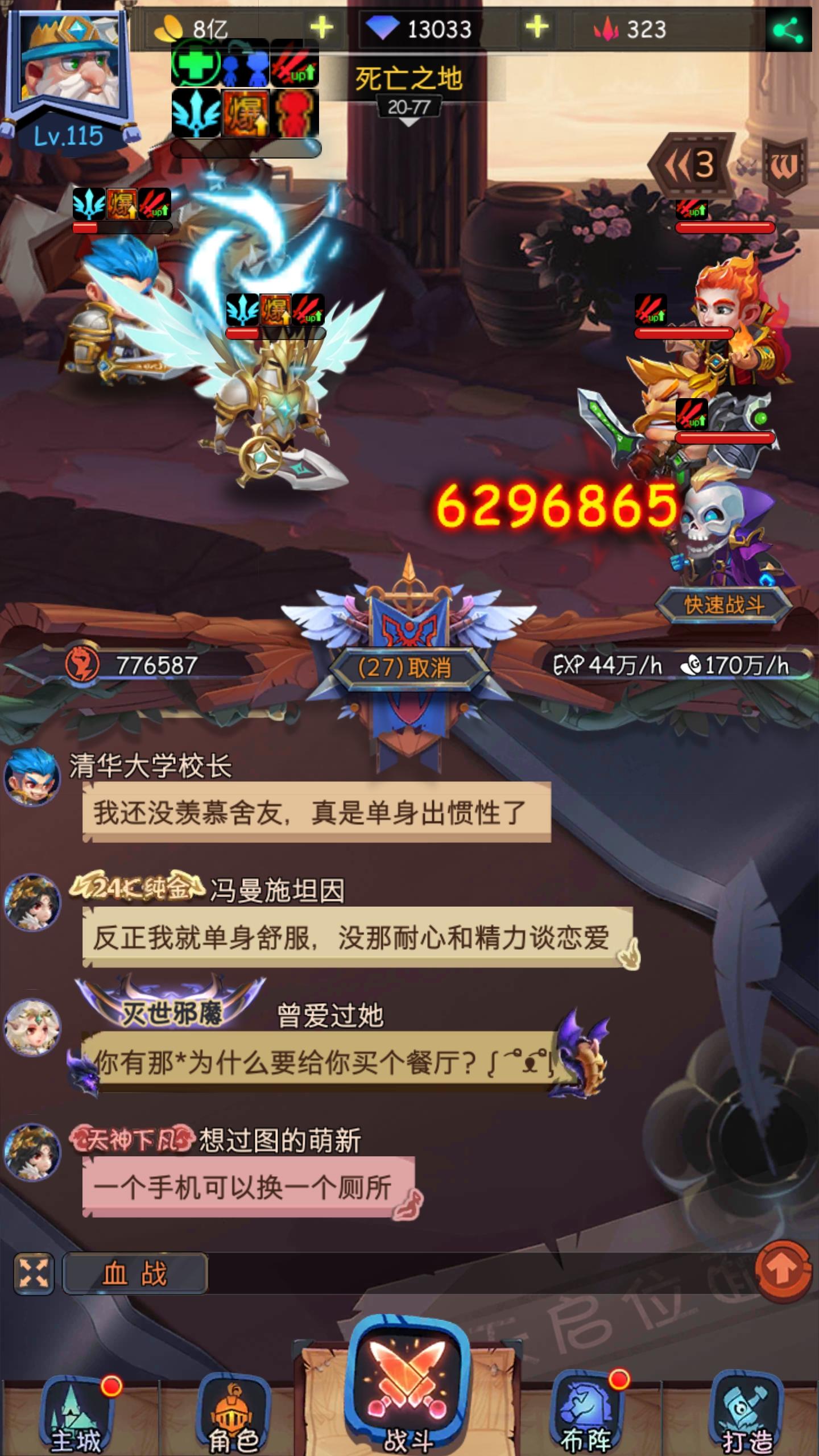 0转20-77过法.一把过.不用睡.如图.已经过了.狮子六连爆.一号狮子对位锻造. 二比蒙三生灵两命运一邪龙.伤害32万. 31万也够..二号天使 三比蒙三命运二邪龙 血224万.三号女皇(图里已经挂了.没来得及截图)三比蒙三命运二邪龙.四号男主(单带加攻.单技能满施法100)搞定...