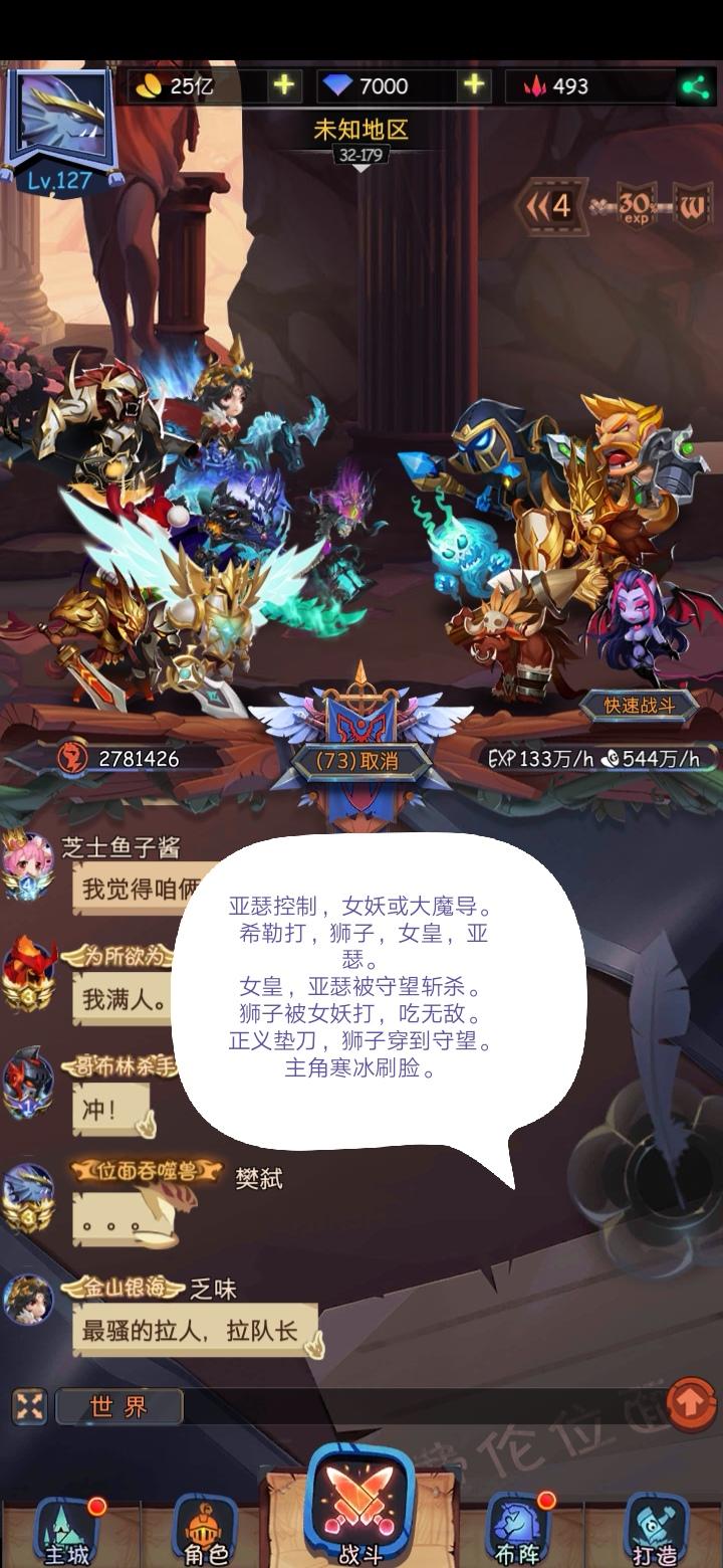 32图前面还好,八十多图,我方肉的属性不够抗不住觉醒希勒,前排又很肉,只有亚瑟刷脸了。后面希勒也很多。多数靠的是脸。32-179亚瑟控女妖或大魔导。卖亚瑟和女皇。女皇,亚瑟,天使狮子,主角,正义正义不死,垫一刀铅笔牛。狮子吃无敌穿到守望。主角寒冰刷脸。