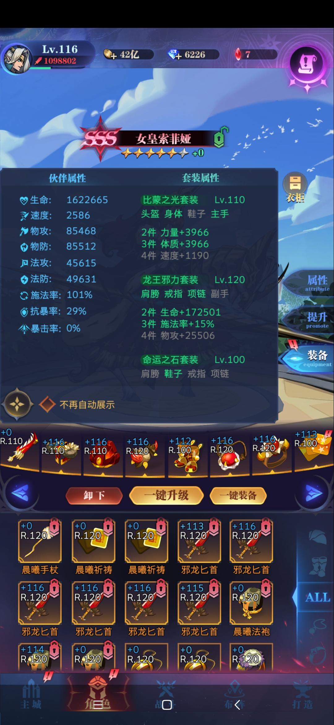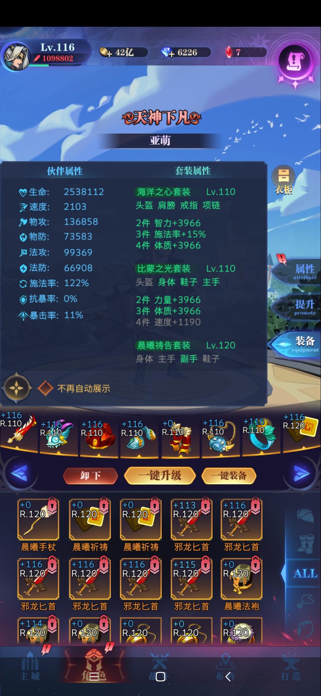亡灵0转23-187(睡了3天)三高攻:亚瑟,男主,天使男主技能:沉默,吸血,被动冰站位:一个小细节,男主站上侧,白羽站下侧,这样站男主可以少挨一下普攻,男主存活下来的收益比白羽大。(男主血量很高是为了刷每日15调的天赋)