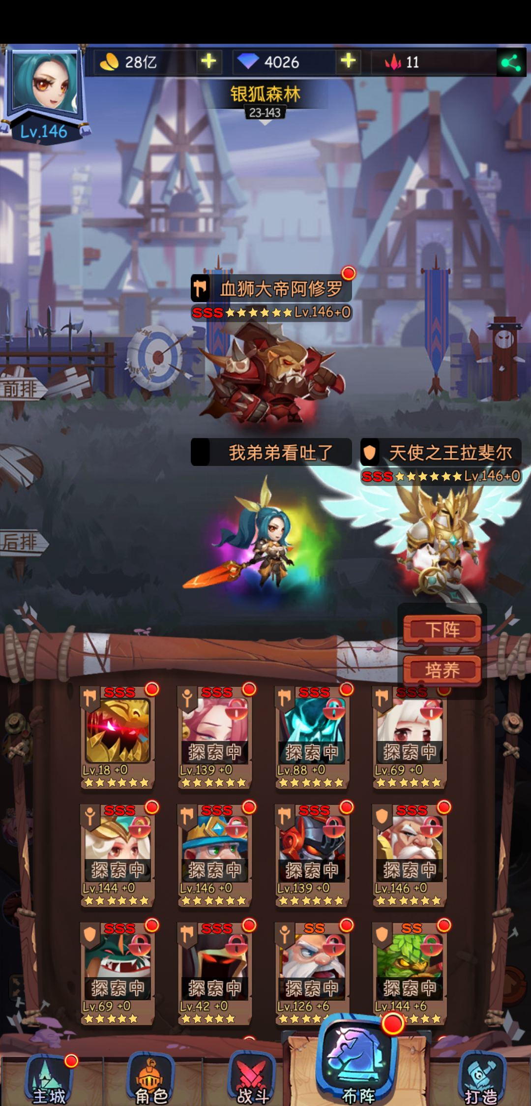 主力:血狮 裂地者 牛头人 鱼人 舅舅替补:诺诺 狼人 元素 告死开局跟国家队一样的流程,首先配齐ss,第一抓血狮这个时候大家就开始按照国家队的顺序抓天使女皇了,然而同档期的亚洲人在考虑第四抓是先星辰还是先元素的时候,我们这些非洲人只能看着已经43%的天使怀疑人生。。。。。。不用怀疑了,天使已经不适合我们,作为一个萌新,一个在新区已经掉队的萌新,我们必须来做点什么。国家队是不可能国家队了,