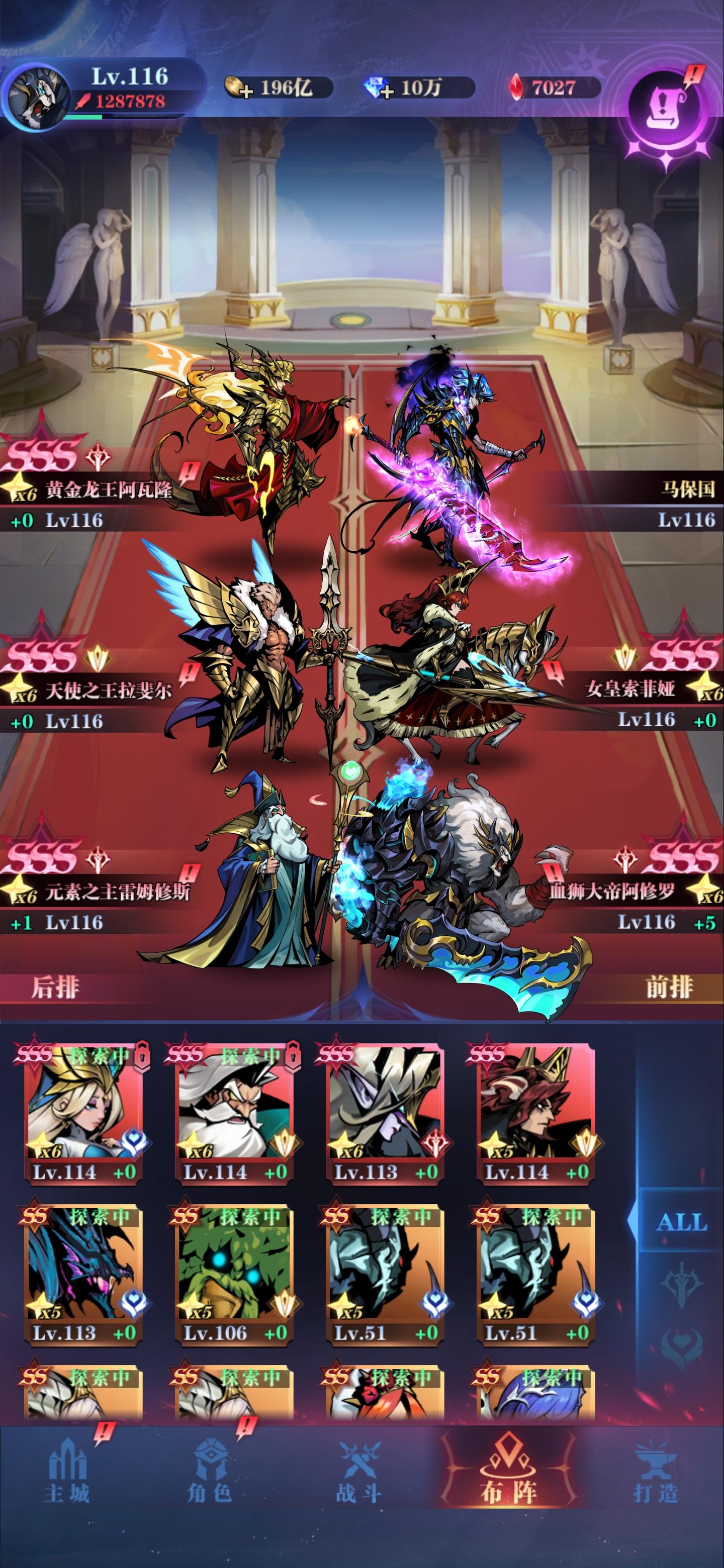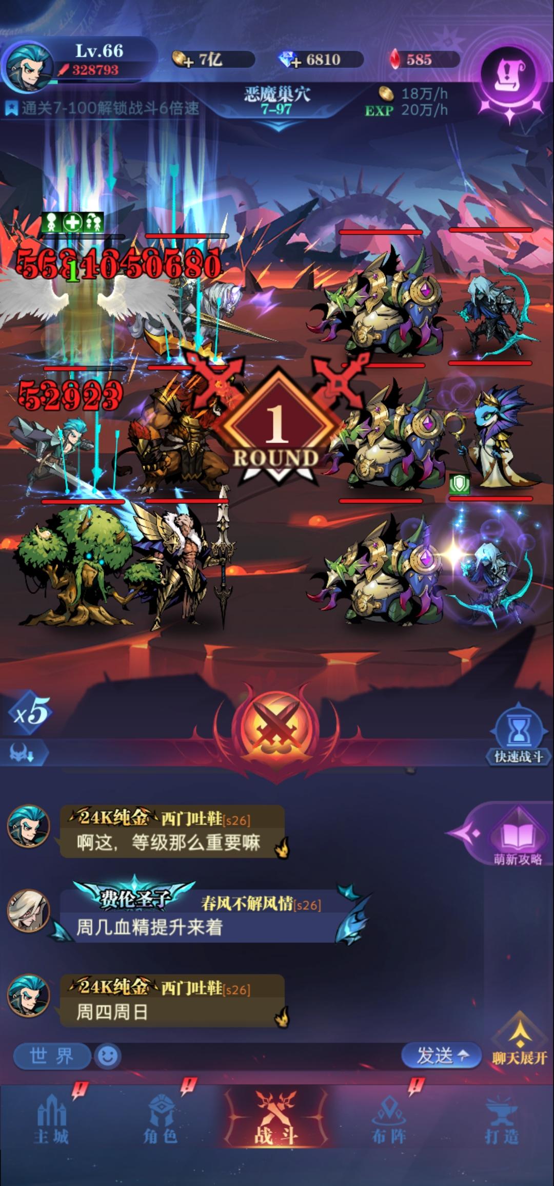 忘了截图了,不过也不要紧。站位如下:天使 圣光 男主鸟人 莎莎 星辰男主带暴食天神,被动晕,第一回合天使吃复活,然后刷脸就完事了