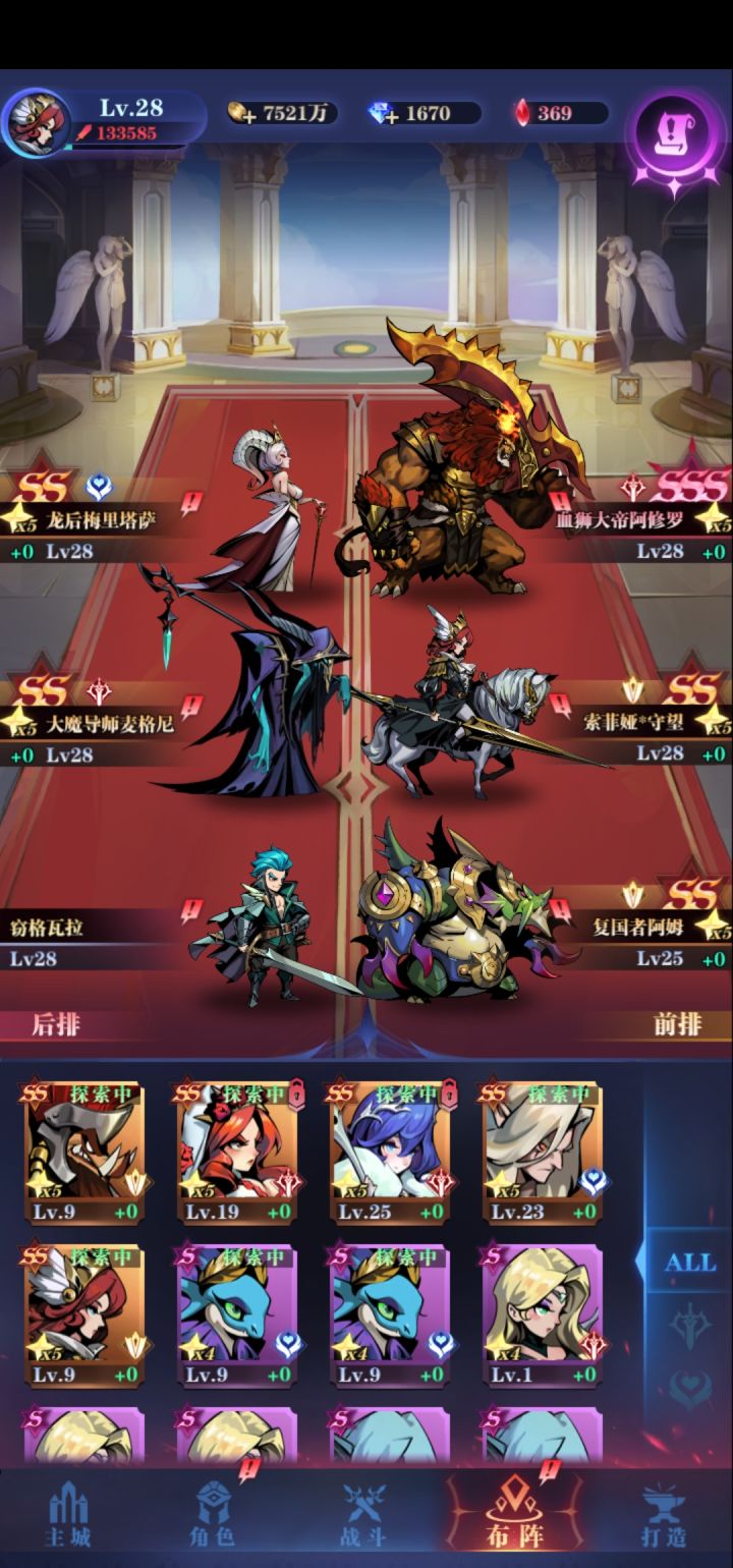 推图状态:疲倦。36-139 睡一天36-200 调整防御,狮子,天使,女皇防御最低。