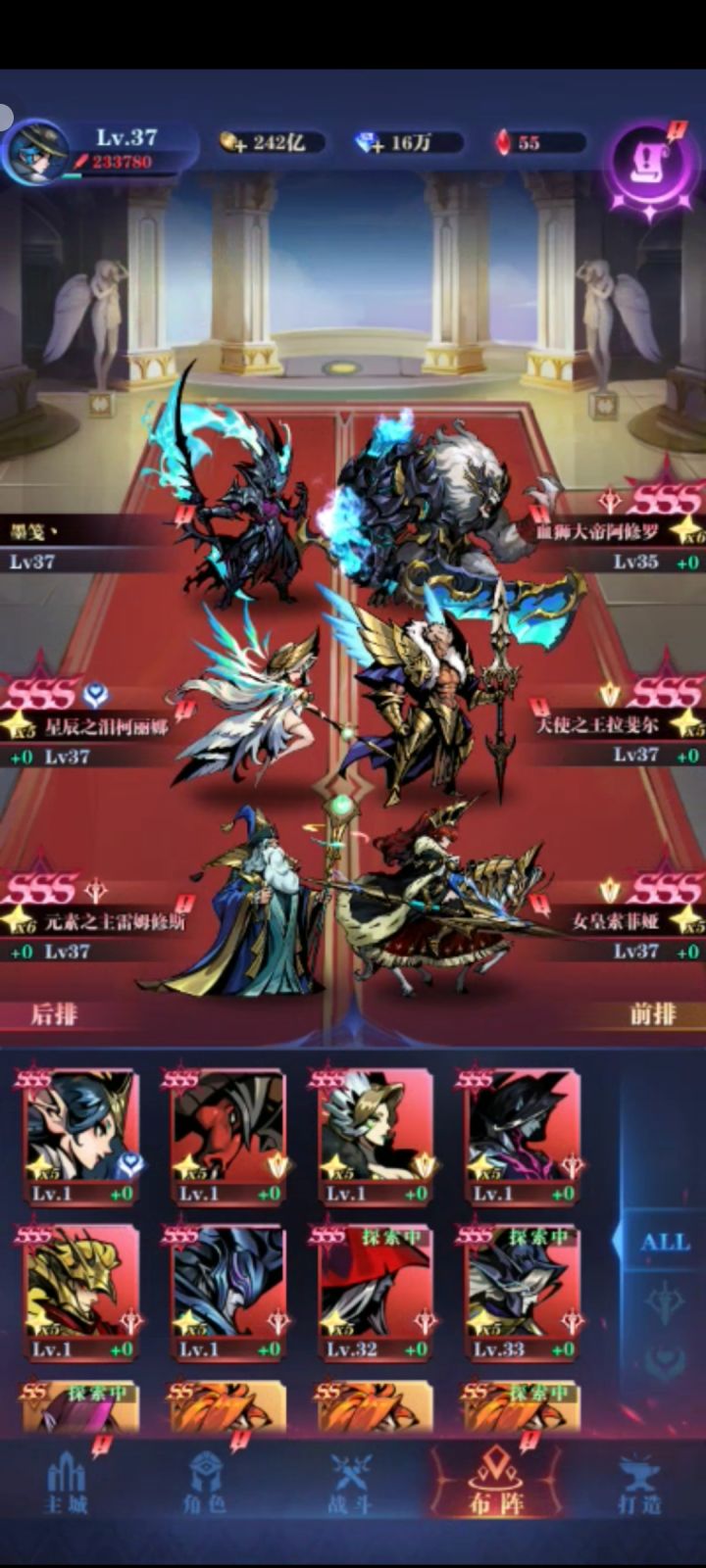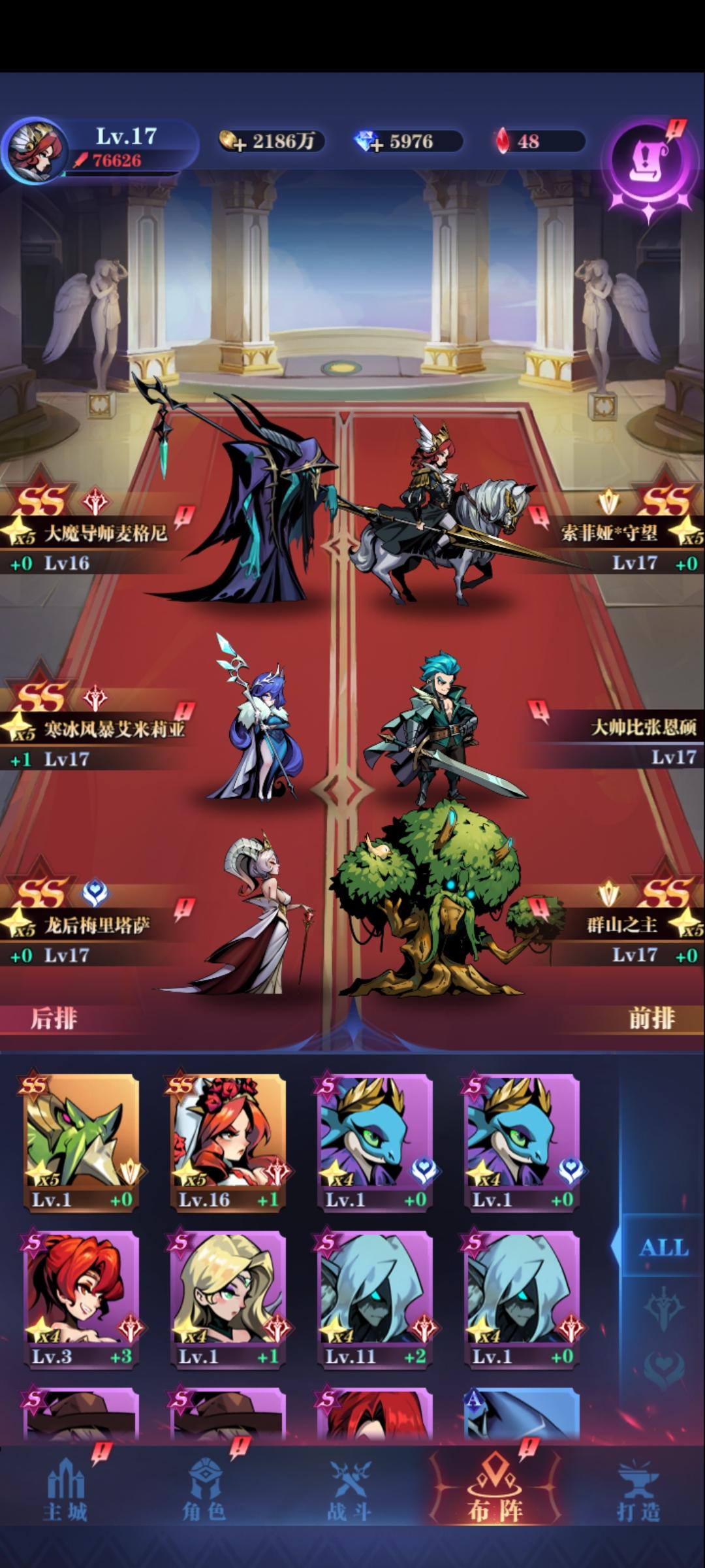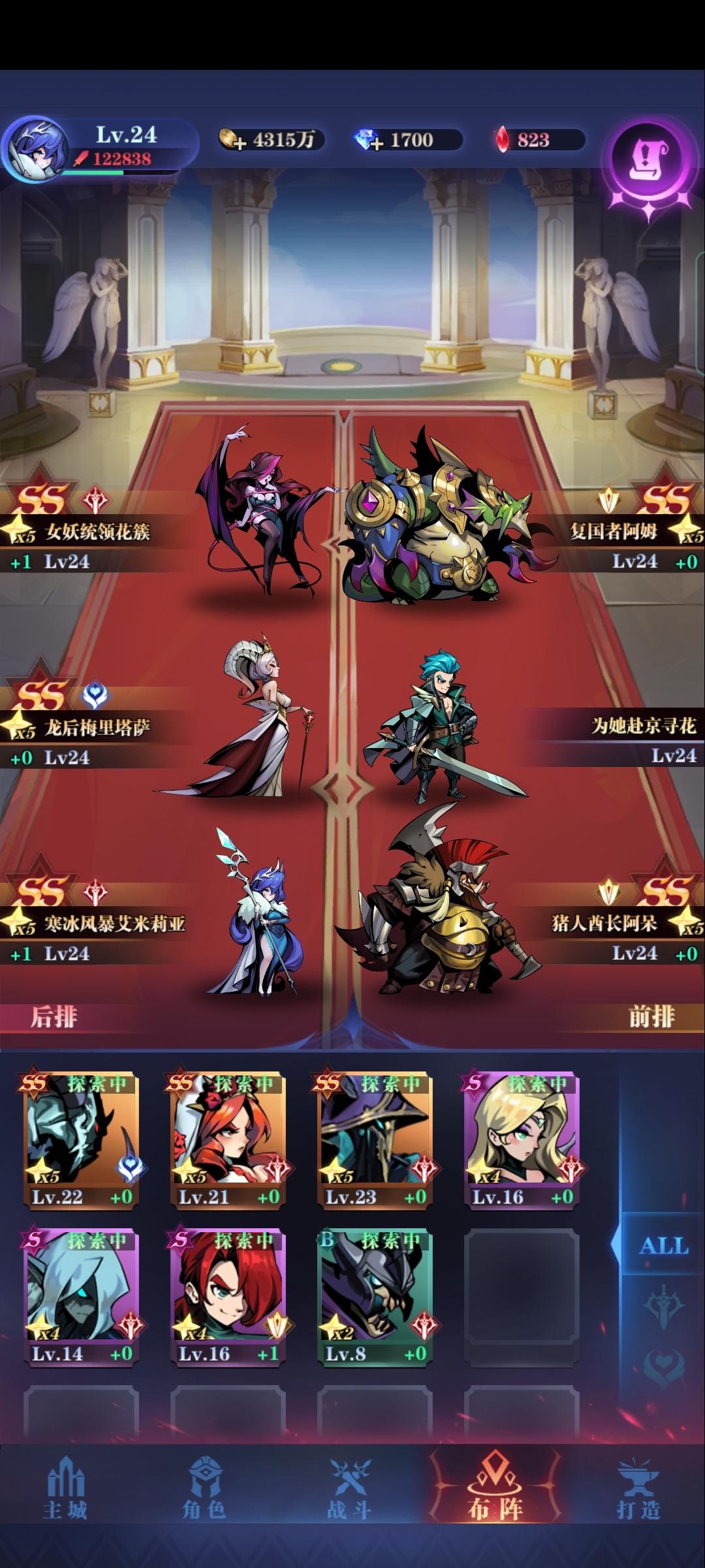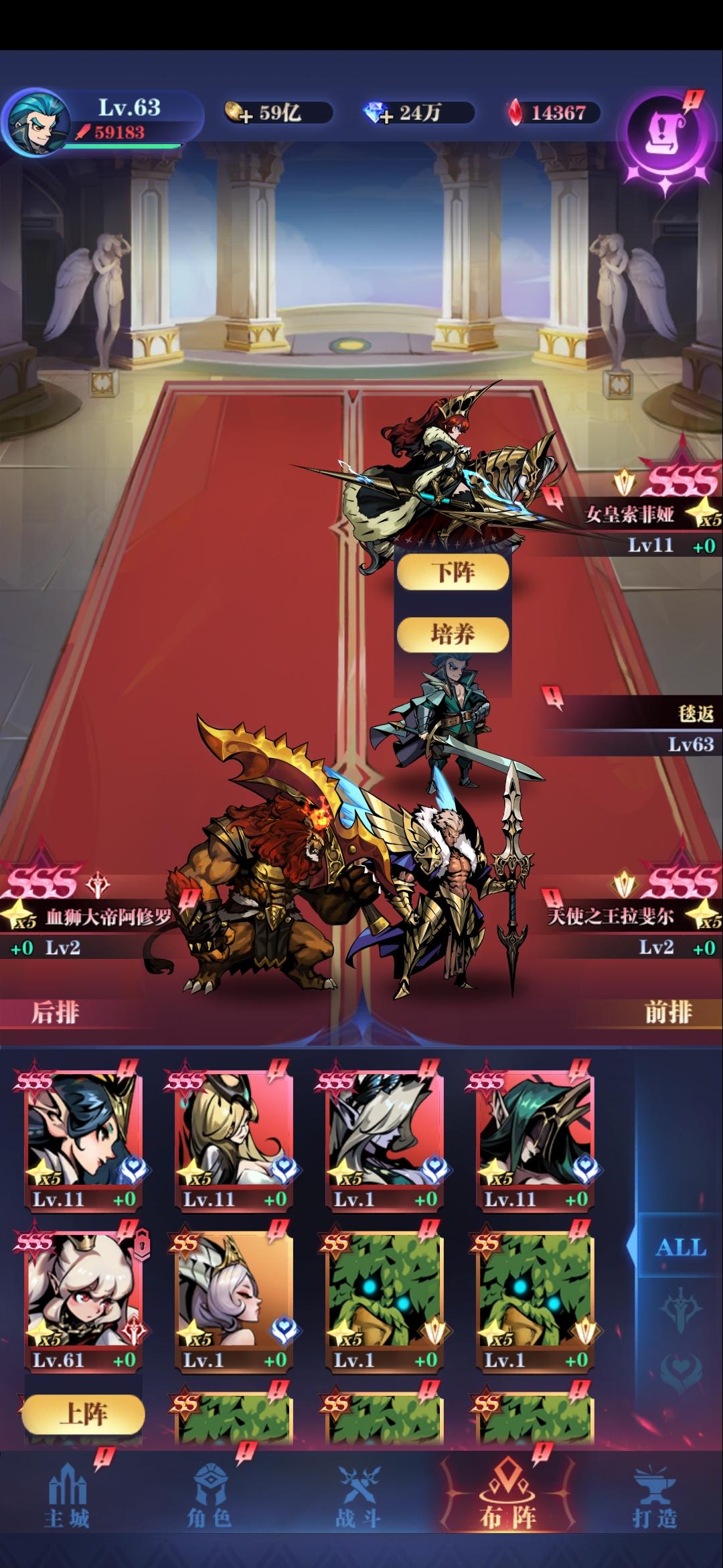 大家好我是来自费伦-鱼人礁岩的傲狼牛牛。 目前等级109 推图19-18。发这个贴子主要是想分享一下。目前自己对这个游戏的认识 ,对于萌新可以帮助你快速上手。一 队伍阵容提一句哈,主角不能下场!不能下场!不要像我一样一开始在聊天室傻呵呵的问主角怎么下场这个游戏里面队伍很多 主流队伍就国家队和亡灵队 我这里只说一下国家队国家队的抽取顺序(个人建议)血狮 天使之王拉斐尔 女皇索菲亚 星辰之泪