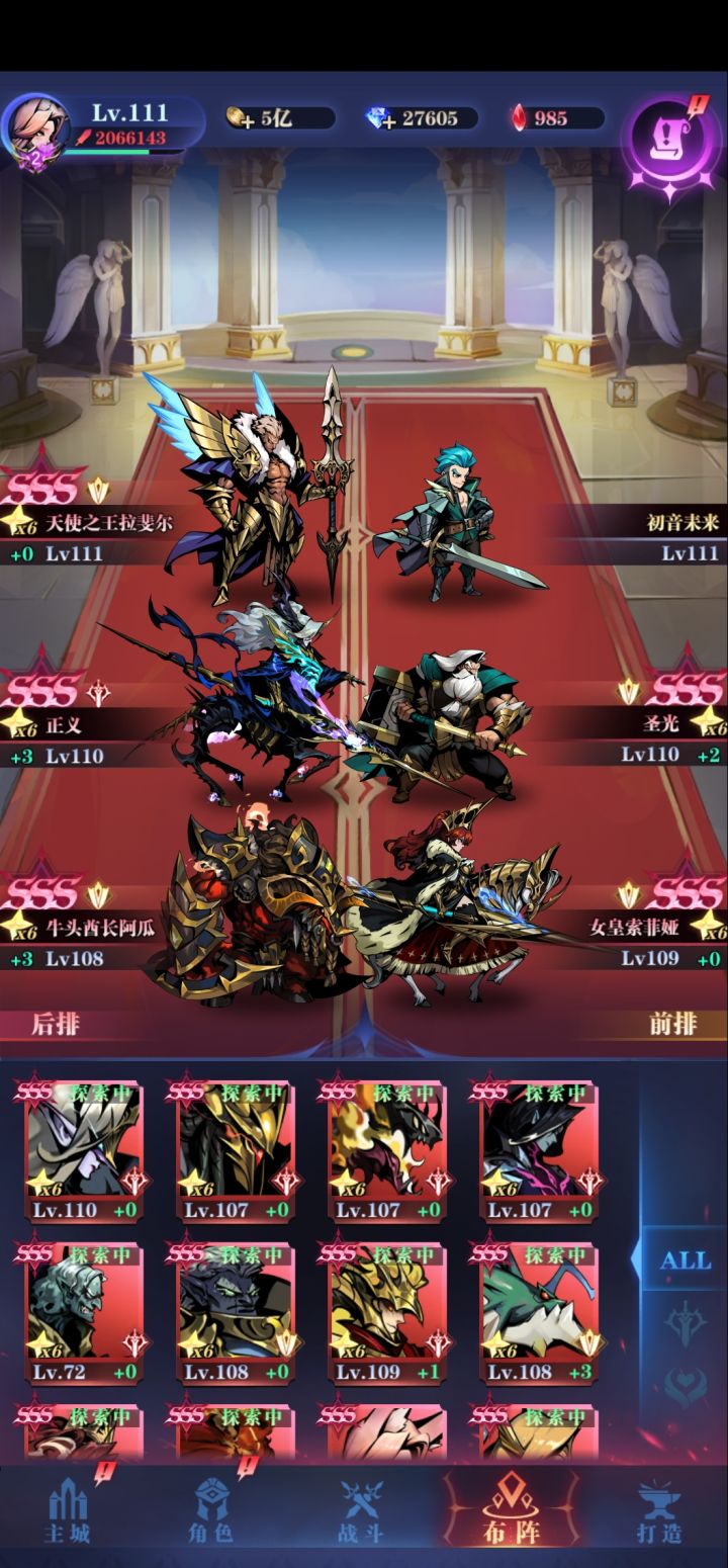 后排:女皇狮子主角前排:风语天使鱼人主角带双冰属性要求:狮子32w攻40w血 鱼人120w血较稳