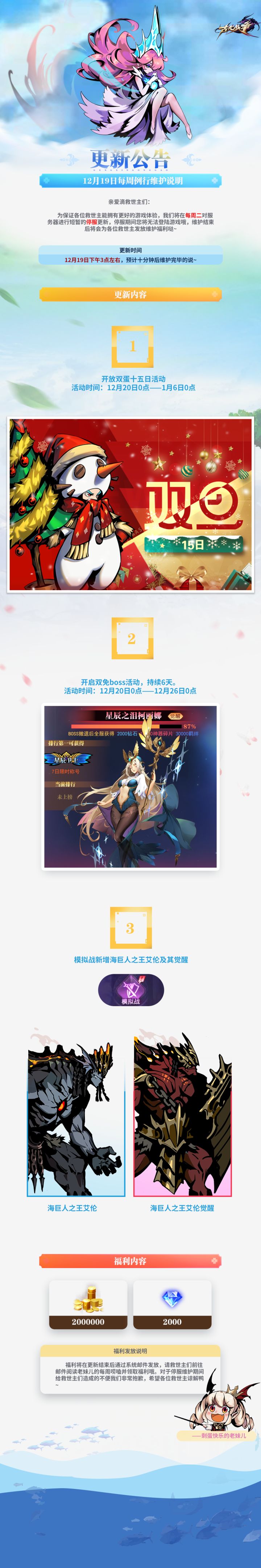 【更新公告】12月19日每周例行维护说明(◕ܫ◕)