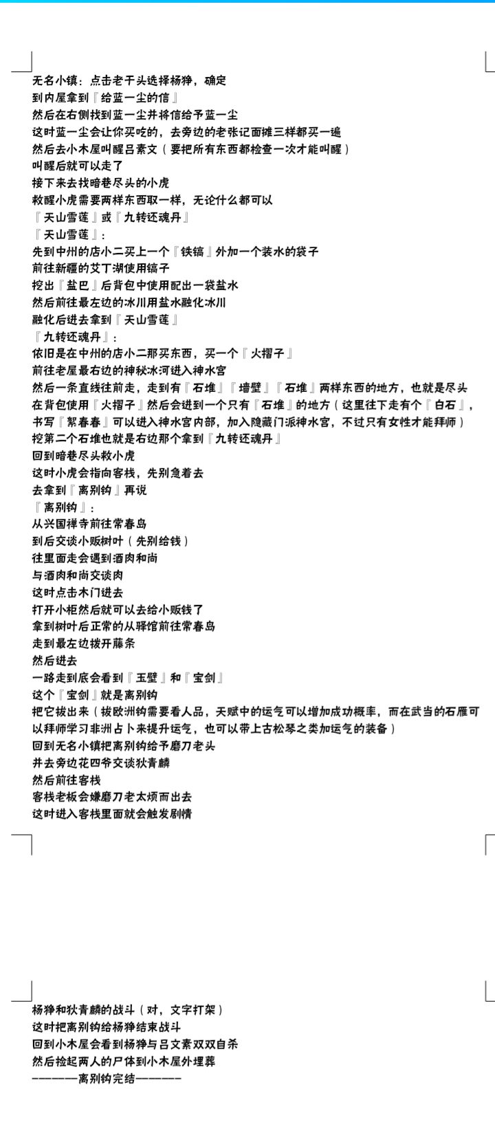 奇遇:离别钩(转自怜花宝鉴公测群一群)
