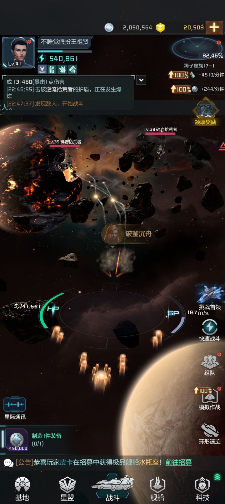 感觉有点意思,但是作战画面有点单调了,也没有任何操作空间,斗蛐蛐魔力转圈圈也比站桩输出好啊,还有空间站和战斗界面的切换太生硬了,为啥不做一个进出空间站的动画呢?