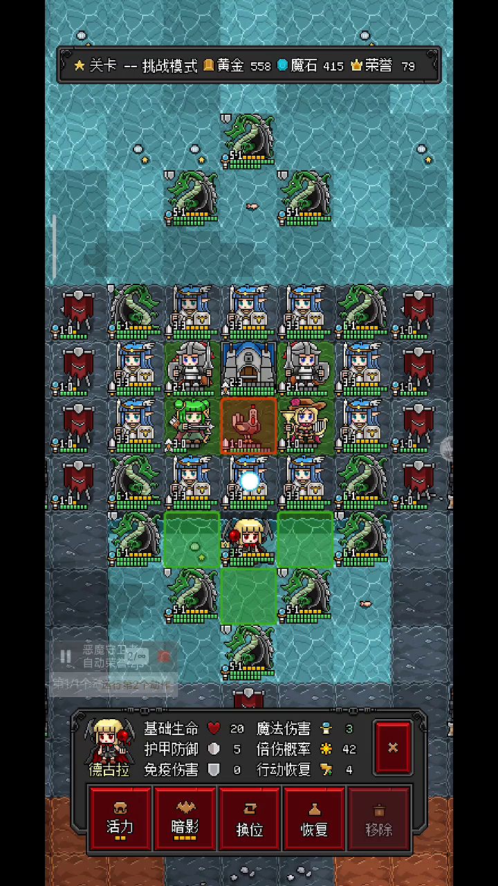 1.怪的AI是攻击附近血量最少的敌人,能攻击到就不会移动2.前排抗抗伤,破破免疫,占格子就行,不要想着当输出用(消耗品,后期敌人火力太猛,活不了几个回合)3.免疫真神也,护甲在免疫面前一无是处所用单位:1.英雄:法老2.荣誉单位:史莱姆(前期占格子抢塔很舒服),精灵剑士(非必须,有更舒服一些)3.其他单位:铁壳怪,巨龙,蝙蝠,暗天使,精灵法师(奶妈),傀儡通关策略:1.前期占1到2