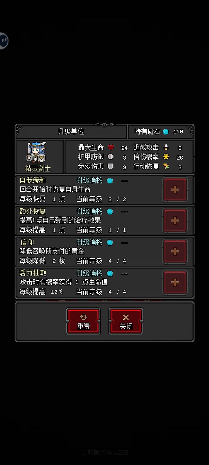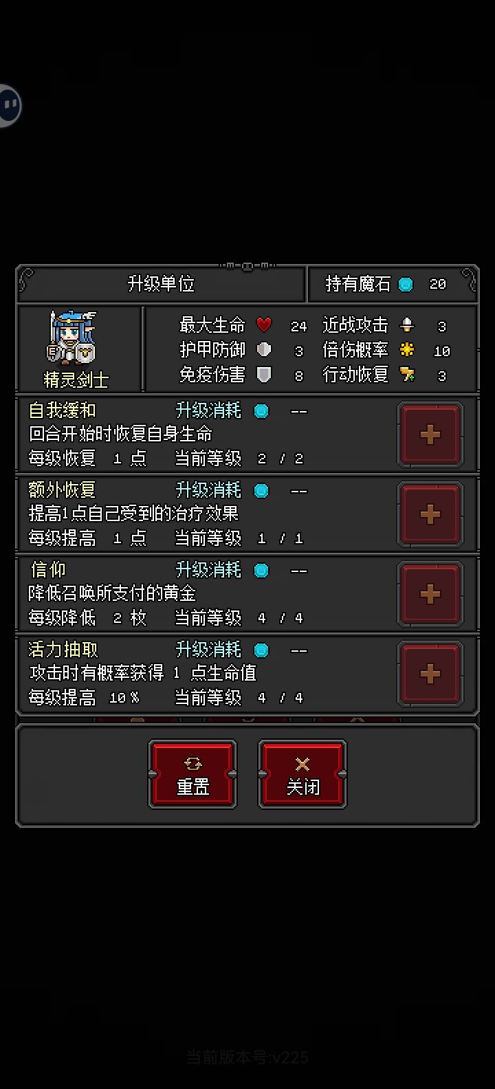 本来没有写攻略的打算,因为这个游戏不难,多尝试几遍基本上都能过,但是这个套路真的有爽度普通模式按照标准攻略先过,德古拉➕蝙蝠➕精灵剑士,德古拉点个蝙蝠就行,其他的随意,蝙蝠可以点满,高行动力加飞行➕德古拉无线召唤,前期很强力,精灵剑士优先点满,他是所以兵种中最肉的,高血量9免伤盾➕攻击恢复血量,必需要的肉盾但在后面有几关,有一个敌方兵种,高防加免伤,蝙蝠和精灵剑士打他显示全是免伤,不掉血,很