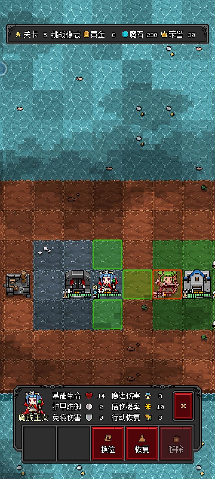 速刷魔石首先初始王女英雄,然后够荣耀买史莱姆然后第五关炼狱开始1.王女杀完弓箭手往下走一步2.买史莱姆,走完对面这些格子然后卖掉,1个不行就2个史莱姆走,一般把冲锋升满就1个行了3.弓箭手,可以把暴击拉满,这个时候对面基地后面的怪不会动而且不会出怪,有暴击2 3回合就拆了一次10来20秒24魔石
