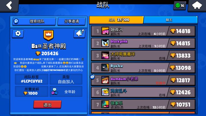 圣者神殿招人,战队非常活跃,需要新人,无论是萌新还是大佬,我们这里一切都欢迎,大家都来这个活跃的战队,一起玩吧!https://link.brawlstars.com/invite/band/cn?tag=QQQRGJUV&token=86k2wyy3
