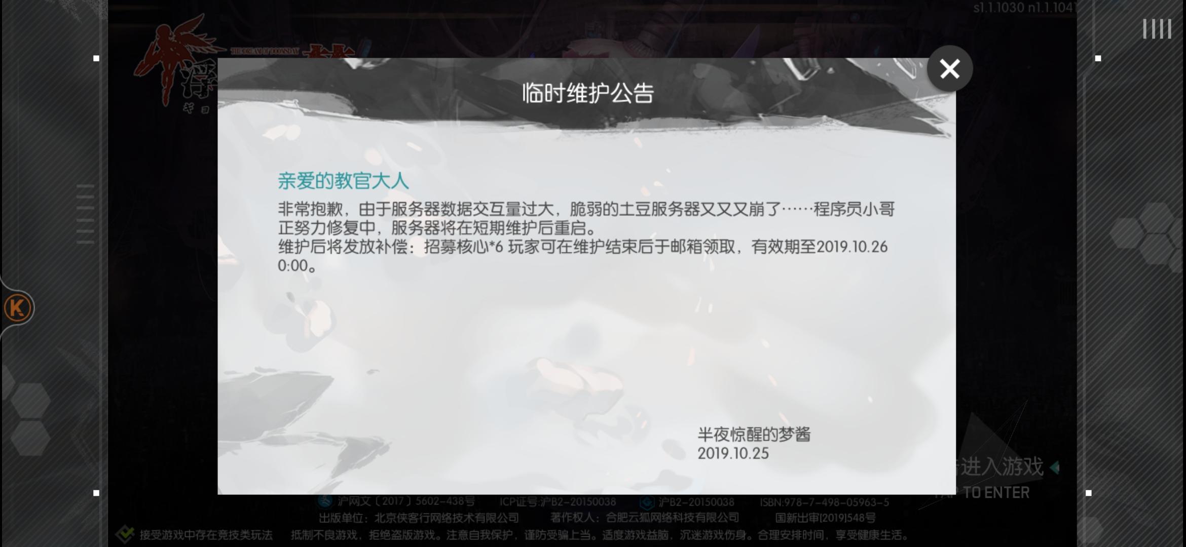 怎么又进不去了!辣鸡服务器,不是修复了吗!?什么?送六练?啊,手机网真差!辣鸡移动……