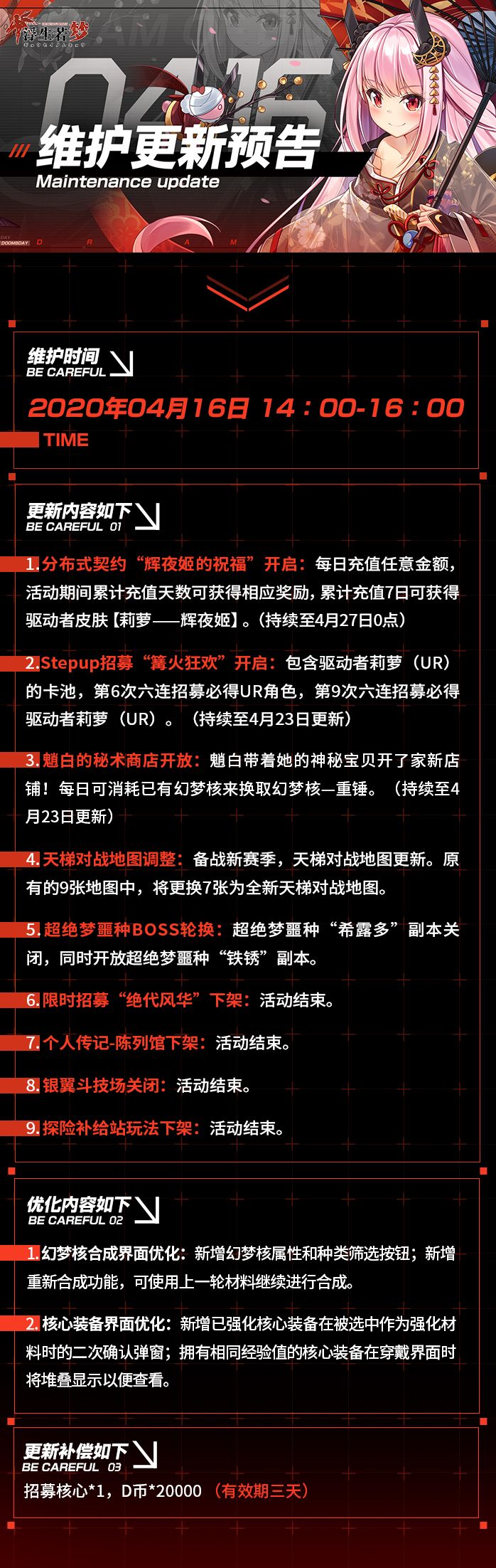 亲爱的教官:《浮生若梦》5月14日将进行停服更新,具体更新内容如下↓↓