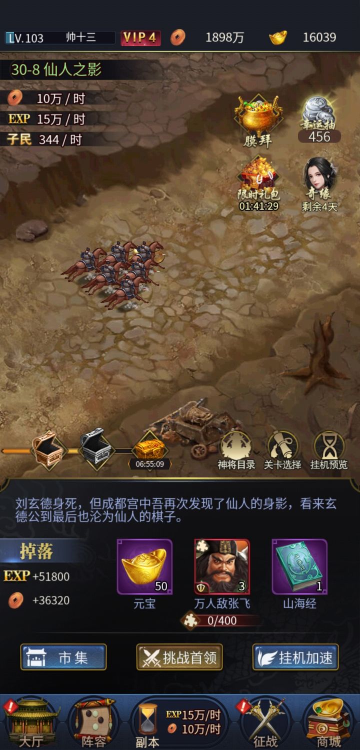 众所周知,这个游戏名字叫诸葛亮养成计划。然而合成诸葛亮的关羽几乎被榜1霸占,我等屌丝只能眼巴巴的,私信榜1,也得不到回复, 望穿秋水。正所谓求人不如求己,46关出诸葛亮碎片,我们还是老实去46关刷诸葛亮碎片吧。本人是充了200块的玩家,买了月卡,终生卡。玩了50天了,关羽碎片55个,唉!然而 ,楼主不信邪。这个游戏从43-1才正式开始,楼主天天琢磨着阵容,终于打到46-6,喜闻乐见,终于可以白嫖