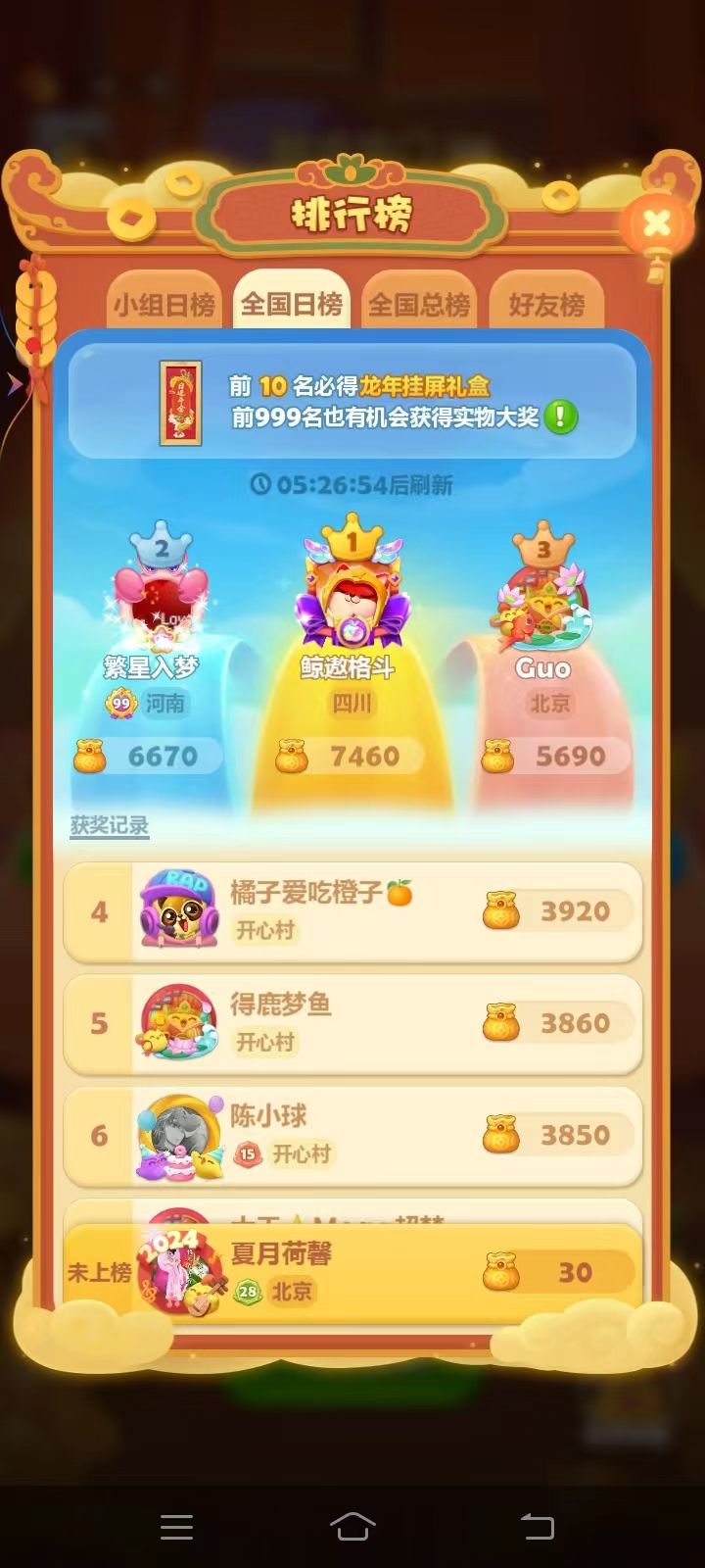 打卡第二天我的消消乐号:6385698773
