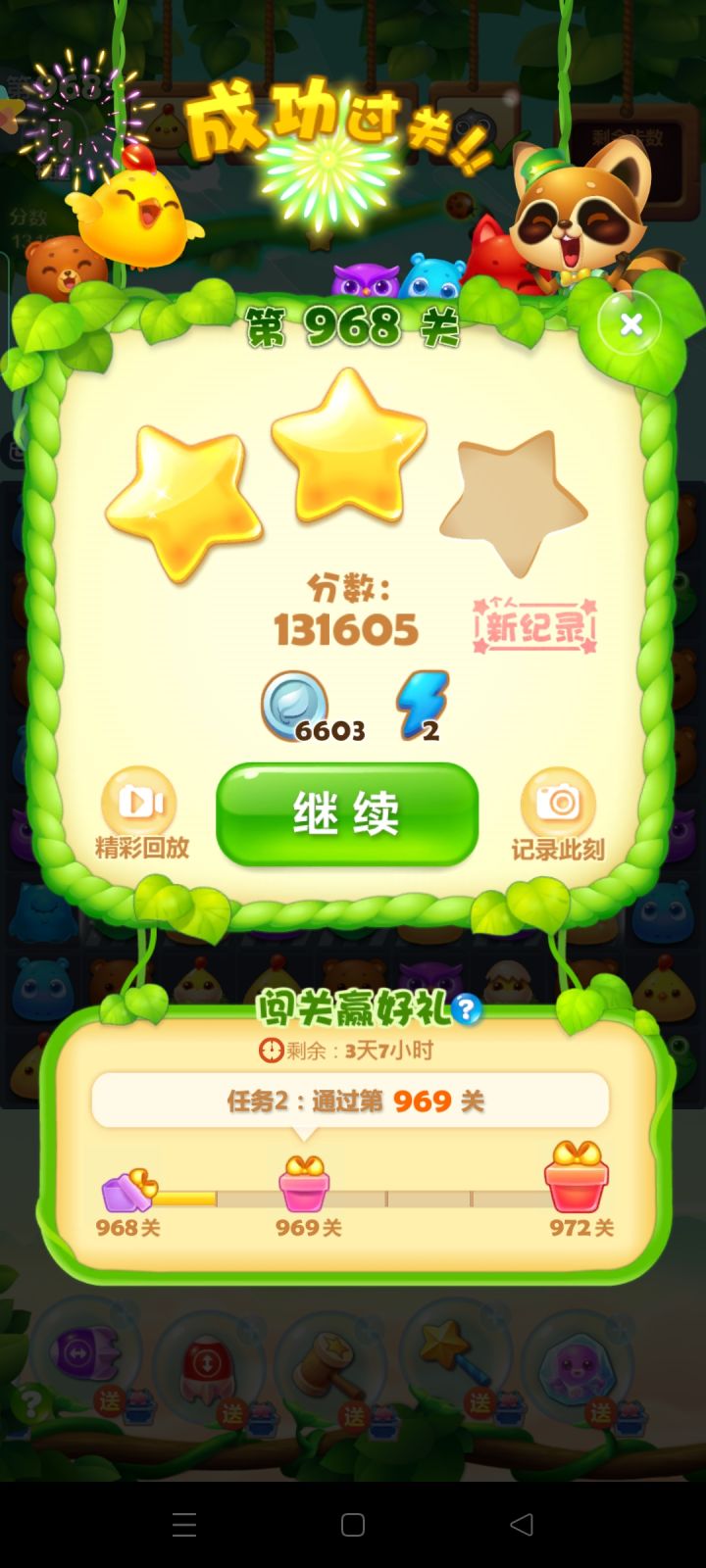 不开心就玩开心消消乐😄,三星轻松过关,差一点就获得彩星了