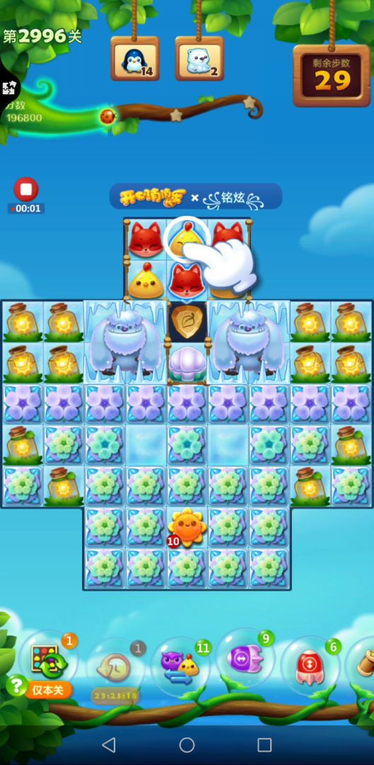各位小村民们,以下是2996关过关经验分享,希望可以对大家过关有帮助此关卡过关目标是26步内收集16个小动物。1:最上方激活魔法石,打跑雪怪。2:收集10个阳光瓶激活小太阳🔆 清屏。3:在底部组合特效易造成连消,魔力鸟和特效组合威力更大呦(利用魔法石下面的直线配合底部横向特效效果更佳)以上是2996关卡攻略希望能帮助到小伙伴快速过关。本攻略来自【杰哥投稿】