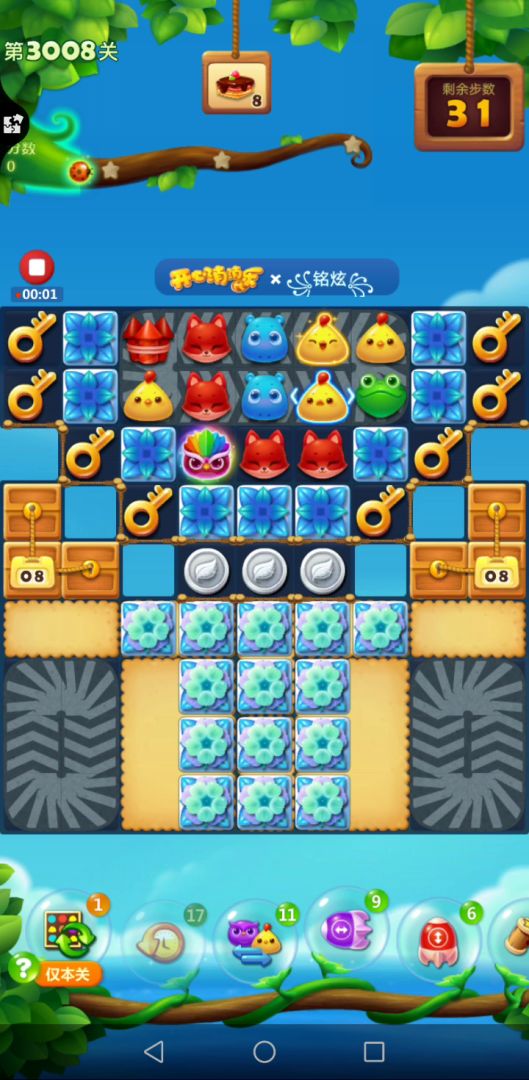 各位小村民们,以下是3009关过关经验分享,希望可以对大家过关有帮助此关卡过关目标规定步数内收集14个小动物。1:右上角击***向左下角收集钥匙,解锁炮台。2:炮台向下轰炸,收集银币为星星瓶蓄能并激活。3:利用三消将鸡蛋染色消除。4:向上推动陀螺,底部组合特效收集剩余动物,重点关注上方角落。以上是3009关卡攻略希望能帮助到小伙伴快速过关。本攻略来自【杰哥投稿】