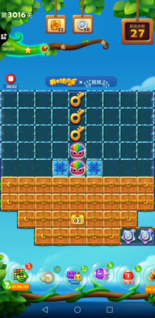四前置加刷新,加五步彩星过关这把打的头大,记得昨天比这次还多个棒子,最后没过去,哎,可不想着再打一次了,赶紧过了吧,开局收钥匙,然后绿色蓝色消除,重点打击下层的冰块,开始切蛋糕吧