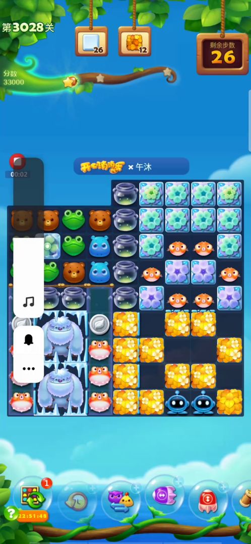 这一关主要是要求落叶和雪块上来先干翻重力场然后把河豚给打爆他注意染色宝宝的使用,因为这关是主打雪块,染色宝宝和特效结合最好然后就过关啦