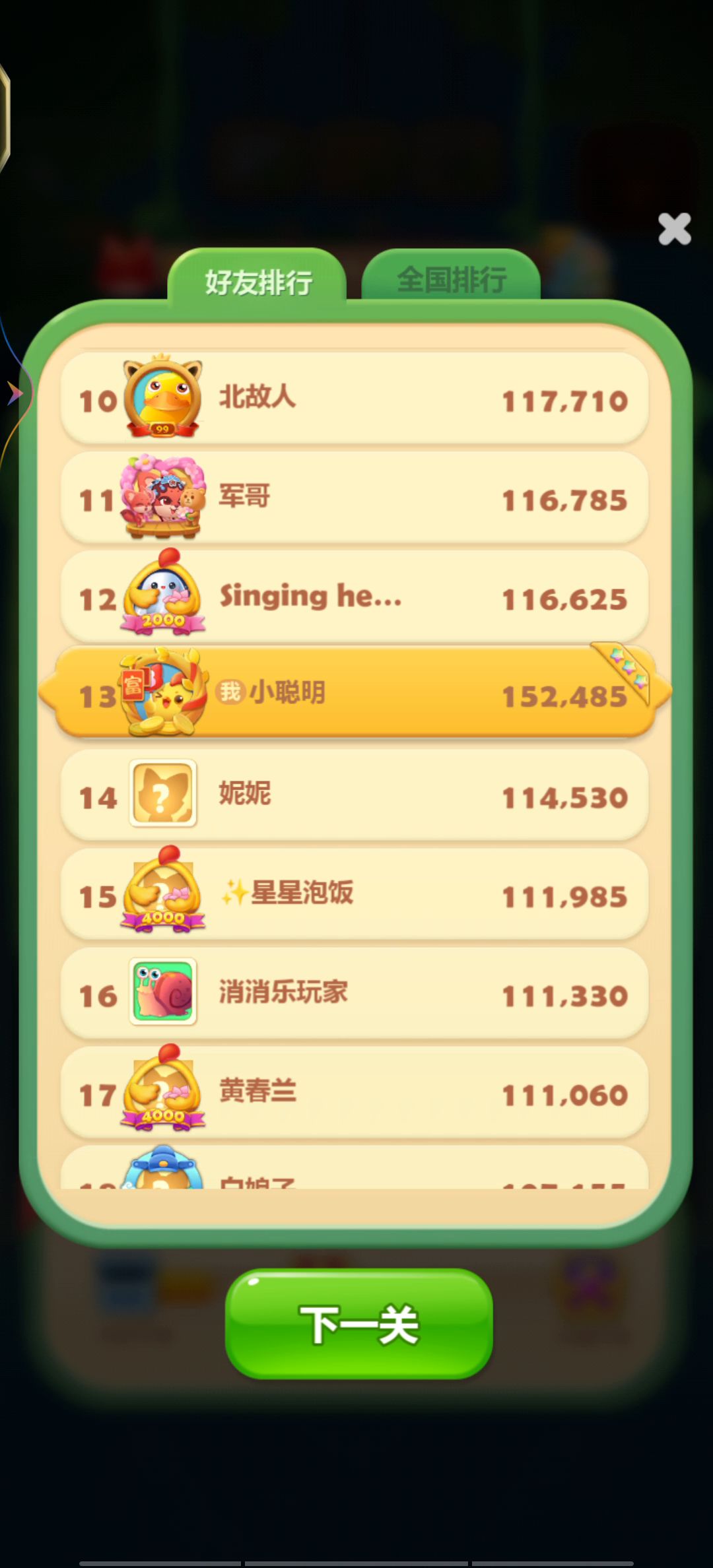 哈哈哈哈,快来快来,我已经1500多关喽,今天这一关居然过了,真的……心情好,昨天咋玩斗不过