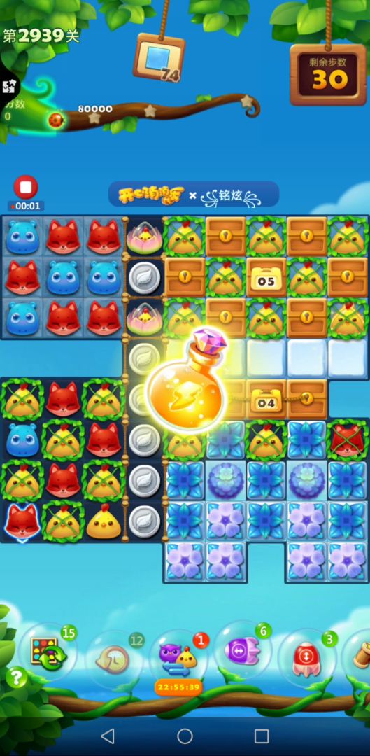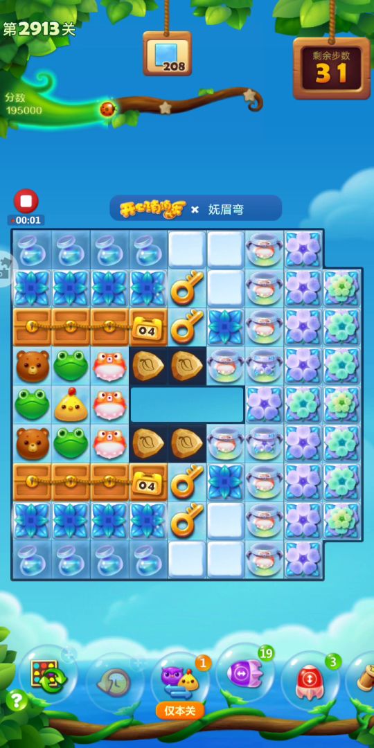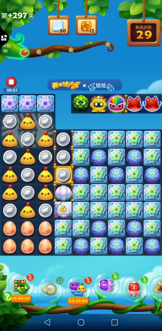 精英关,领了周年奖励3小时无限,分享任务60分钟,四叶草一个半小时,297打了几个小时也没过,先补星吧固定开局(攻略见视频或攻略帖难点在右边冰块非常厚,建议在左侧组横向特效来打,本来可以加三过关的,倒数第三步走错了,最后一步用了个限时强制,本来可以省下来的还有2933没有打彩,精英还差297了,争取打完两关迎接今晚彩星更新,加油,奥利给!
