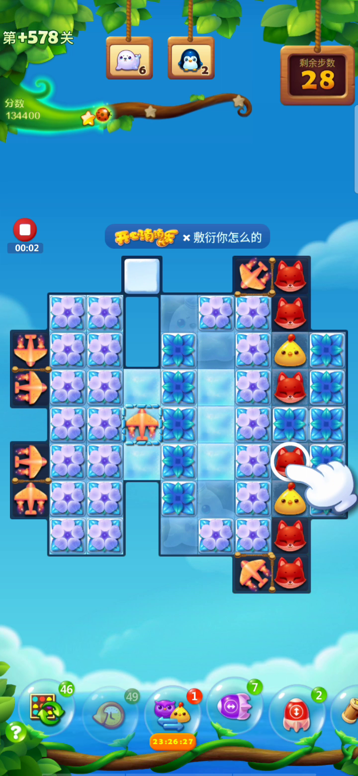 打了十几把才过关,直接彩星,前置加三,特效打的右侧收集钥匙,打开魔法石,击打气鼓鱼完成开局,后边自由发挥。(优先打开左上角冰块,掉落蜜罐🍯,通关要求是冰块和蜜罐,左侧三消打蜜罐冰块,右侧适当组合更想特效和鸟。注意有银币阻拦的地方横特打不过去,主要打蜜罐就行,冰块顺带消除。)详细见视频