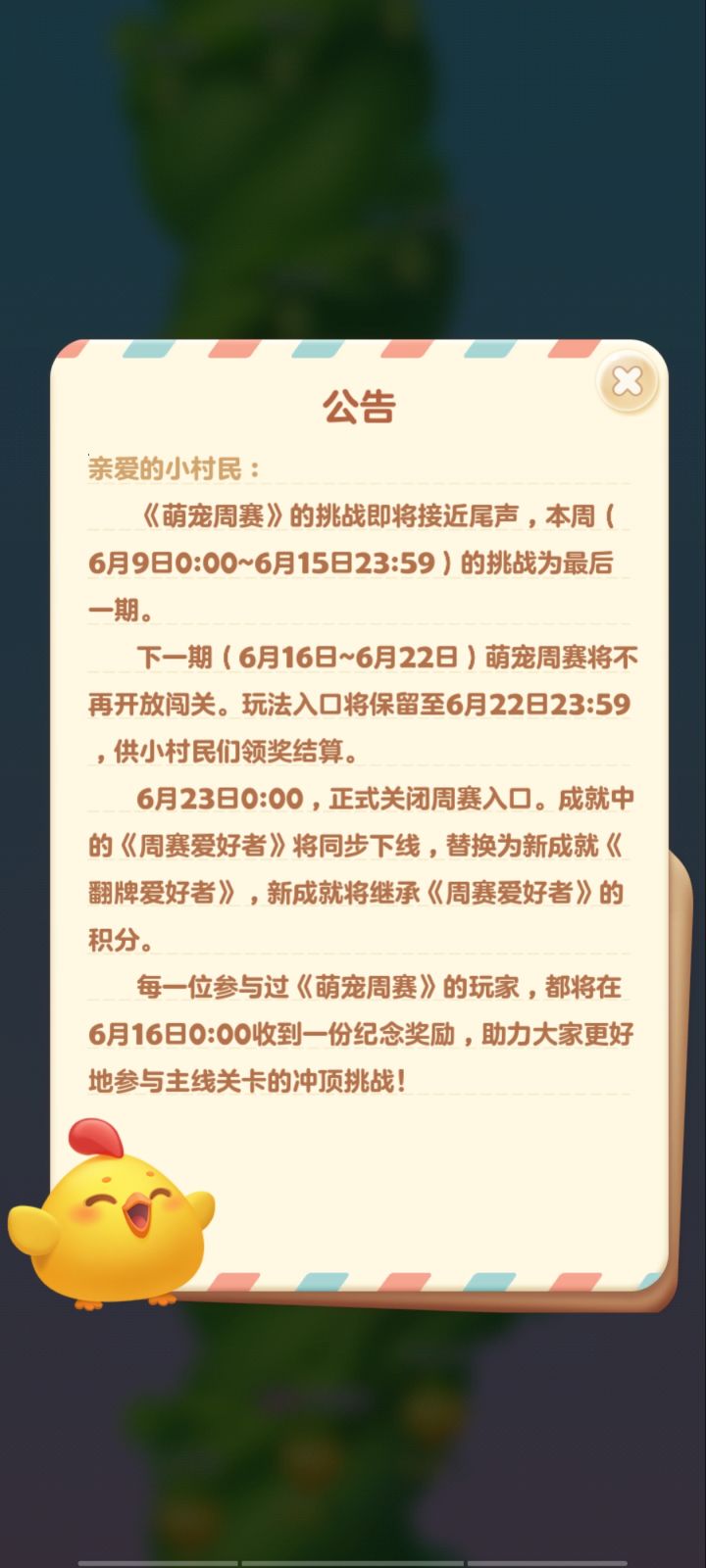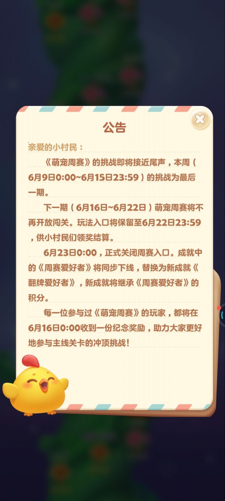 萌宠周赛要下线了 你们都收到这个通知了吗