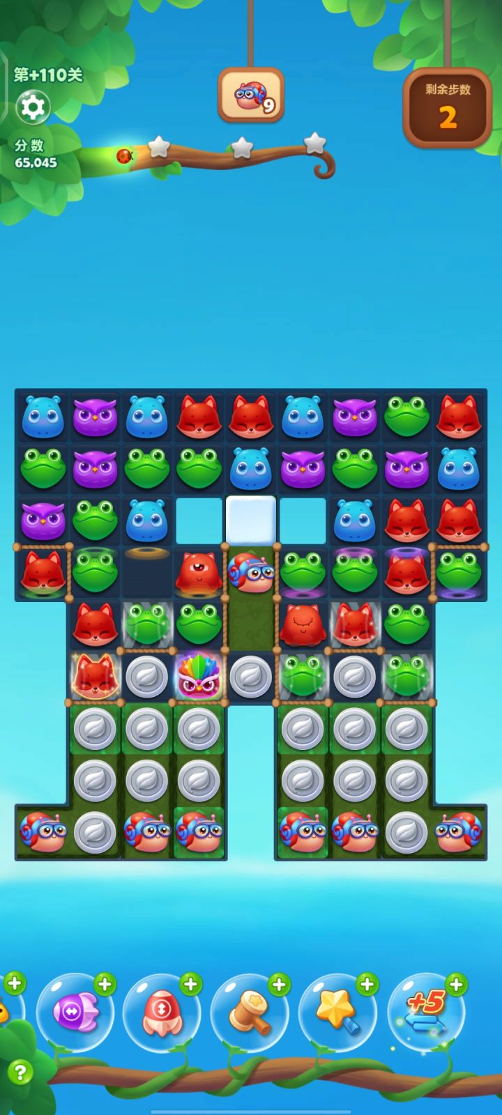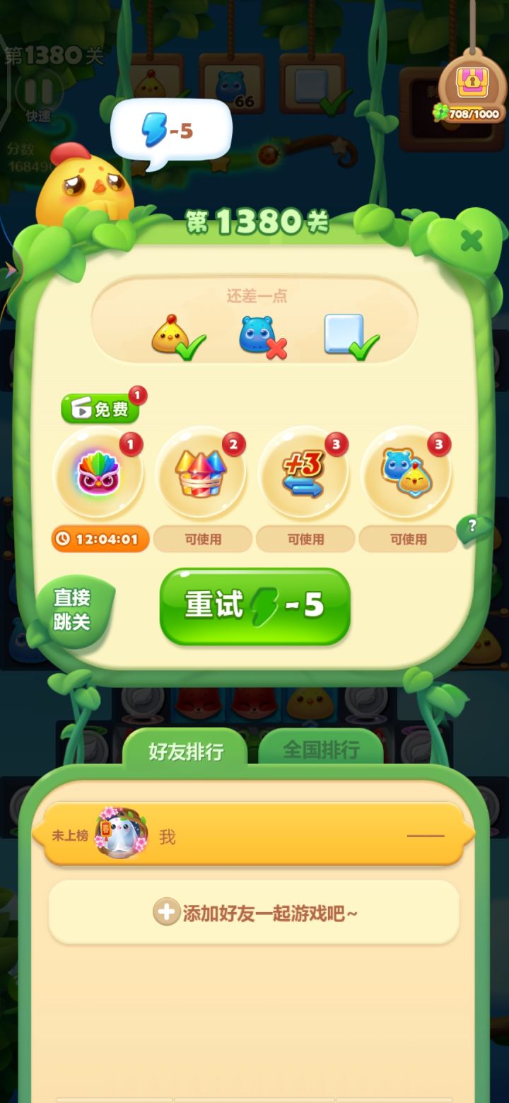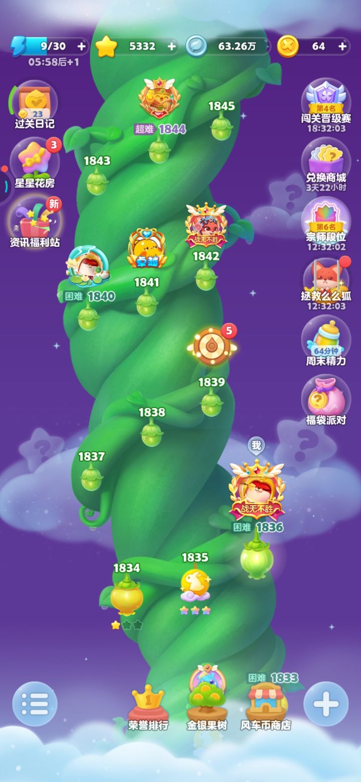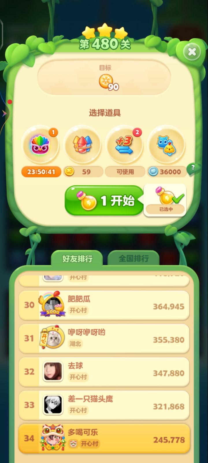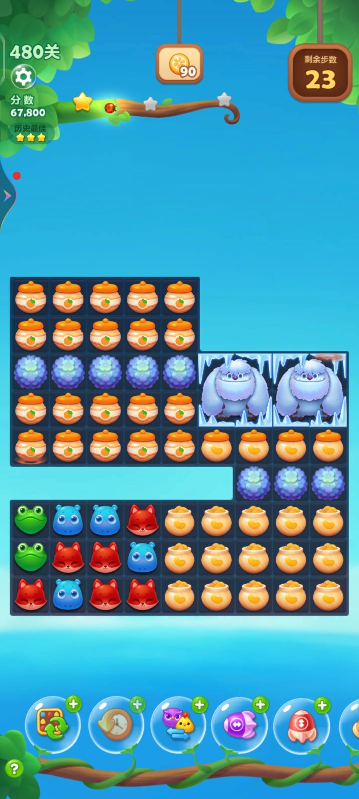从年前就开始每天玩这关,没有200次也有100次了,还是在我34个好友的最后一名,二星通关差不多也有20次了,三星通关才两三次,运气最好也就10步消完90个桔子,结算的时候还有13步都是勉强三星,彩星遥遥无期