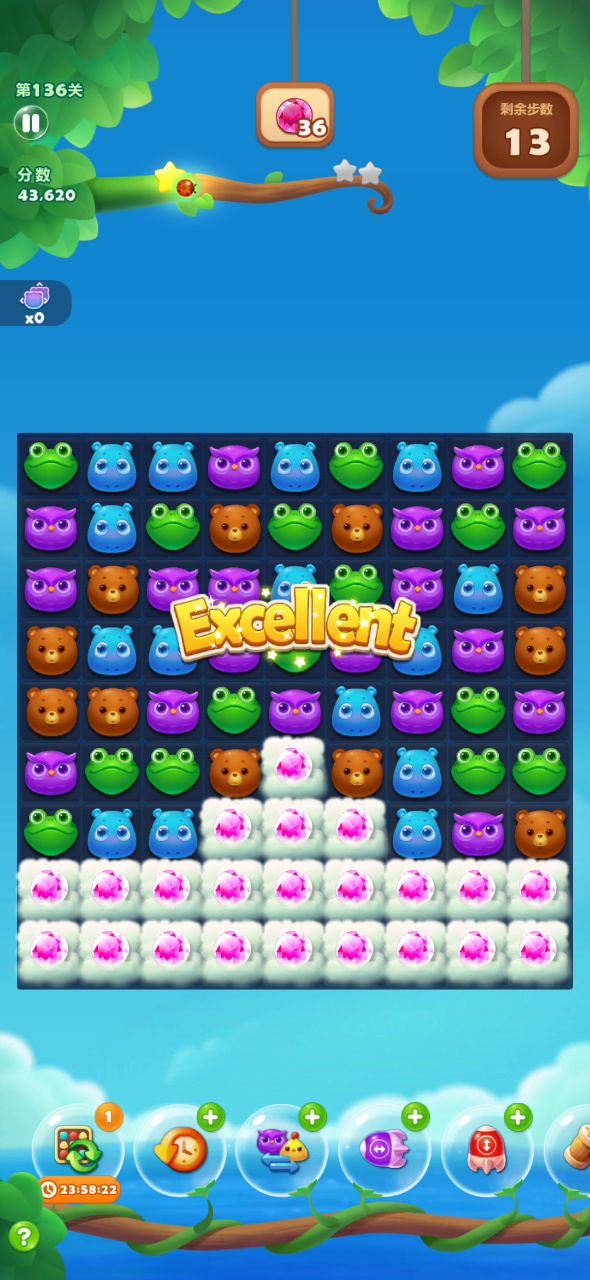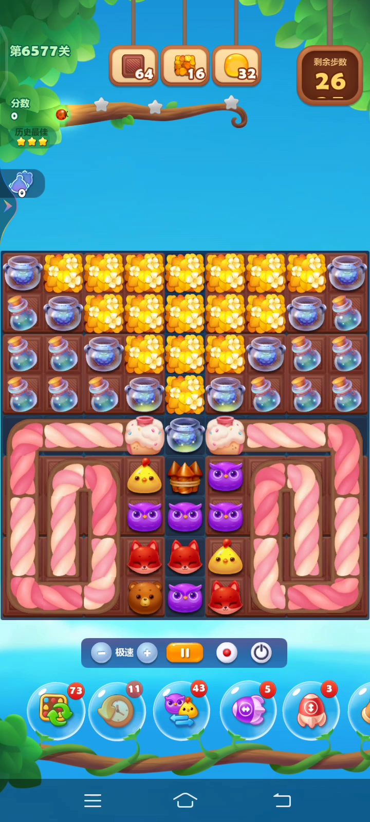 刚开始玩一个月,总算到这关了,险险拿到彩星